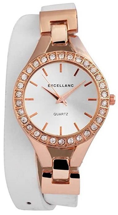 Damenuhr Armbanduhr Kunstleder Wickelband weiß 43 cm Steinbesatz Analog