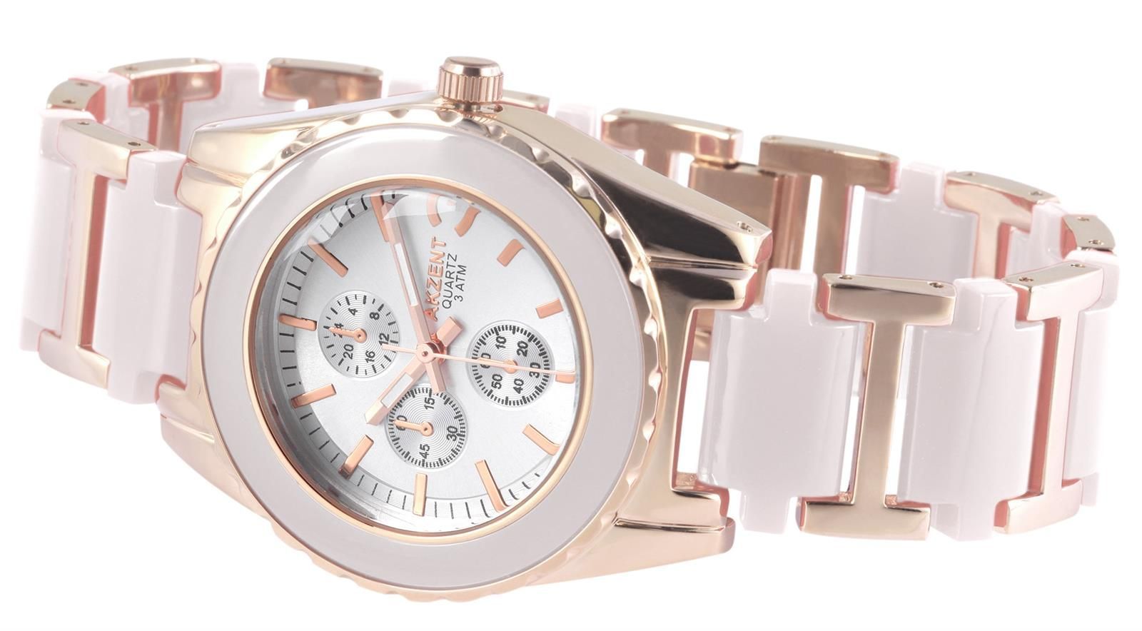 Damenuhr Edelstahlband rosegoldfarben / weiß 3 ATM Analog Quartz Chronolook