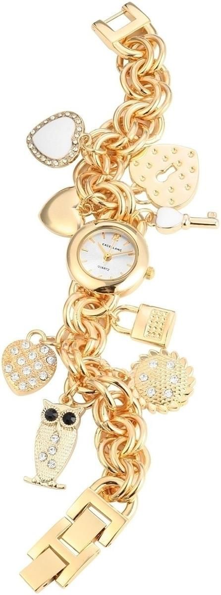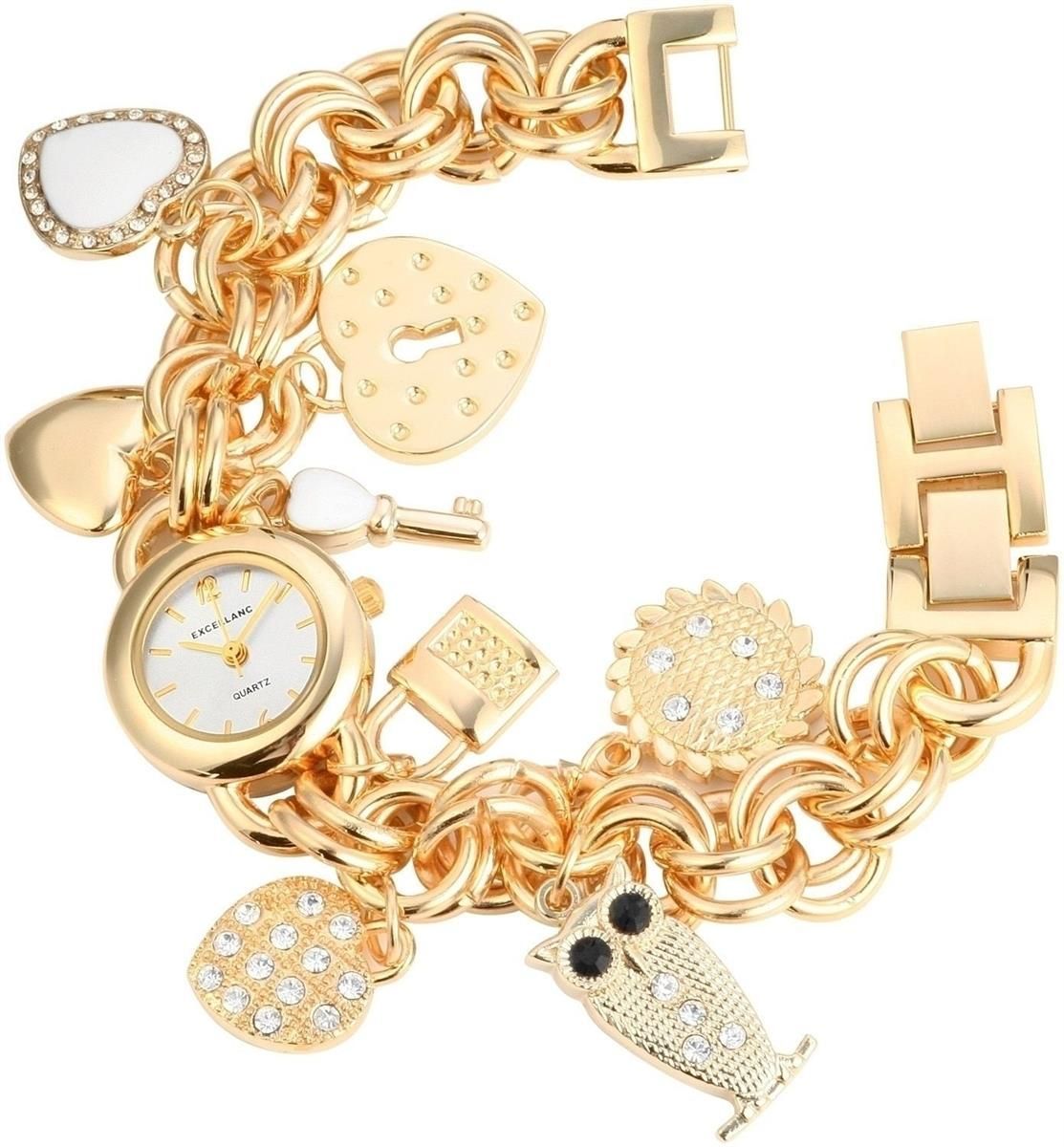 Damenuhr Edelstahlkette Armbanduhr goldfarben Analog Anhänger Herz Eule
