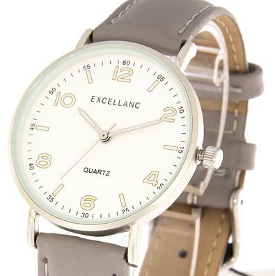 • Excellanc Damenuhr mit grauen Kunstlederarmband - Crystalbesatz