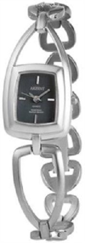 Damenuhr Metallband silberfarben eckiges schwarzes Ziffernblatt Clippverschluss