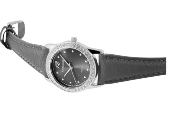 Damenuhr Uhr Armband Kunstleder anthrazit Steinchenbesatz