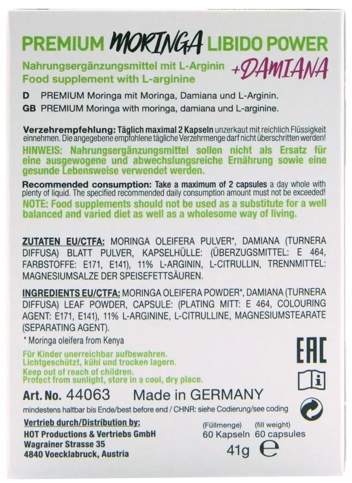 Damiana Libido Power 60 Kaps Sexuelle Kraft Lustmittel Pure Moringa für Frauen