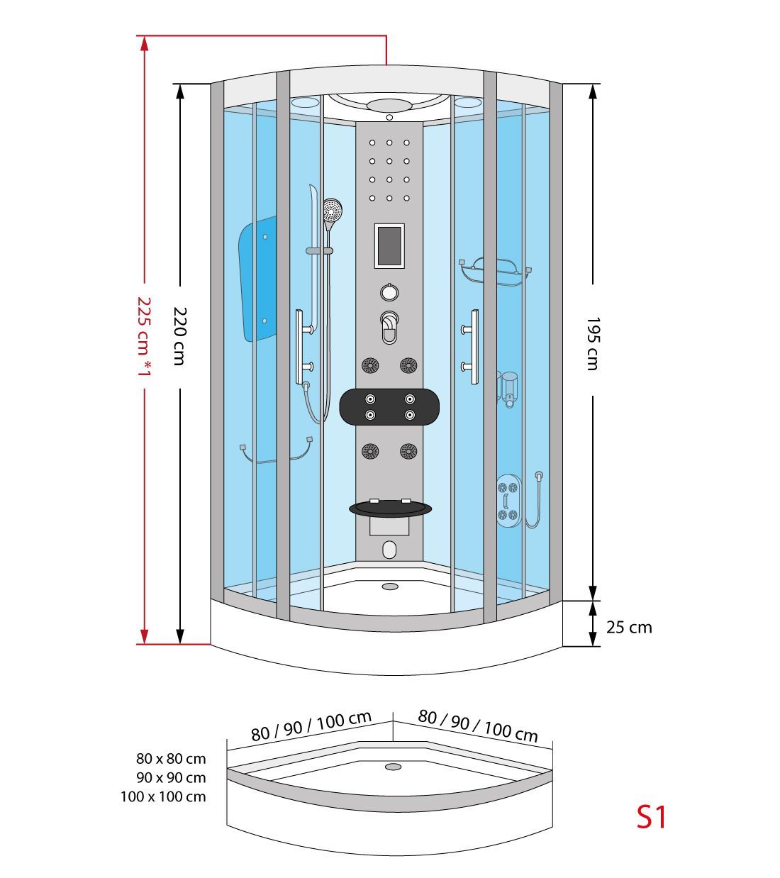 Dampfdusche Dusche Duschkabine D58-63M2-ALL Duschtempel Sauna 100x100 cm