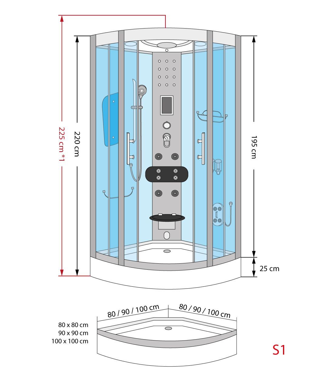 Dampfdusche Duschtempel Sauna Dusche Duschkabine D46-60M2 100x100 cm