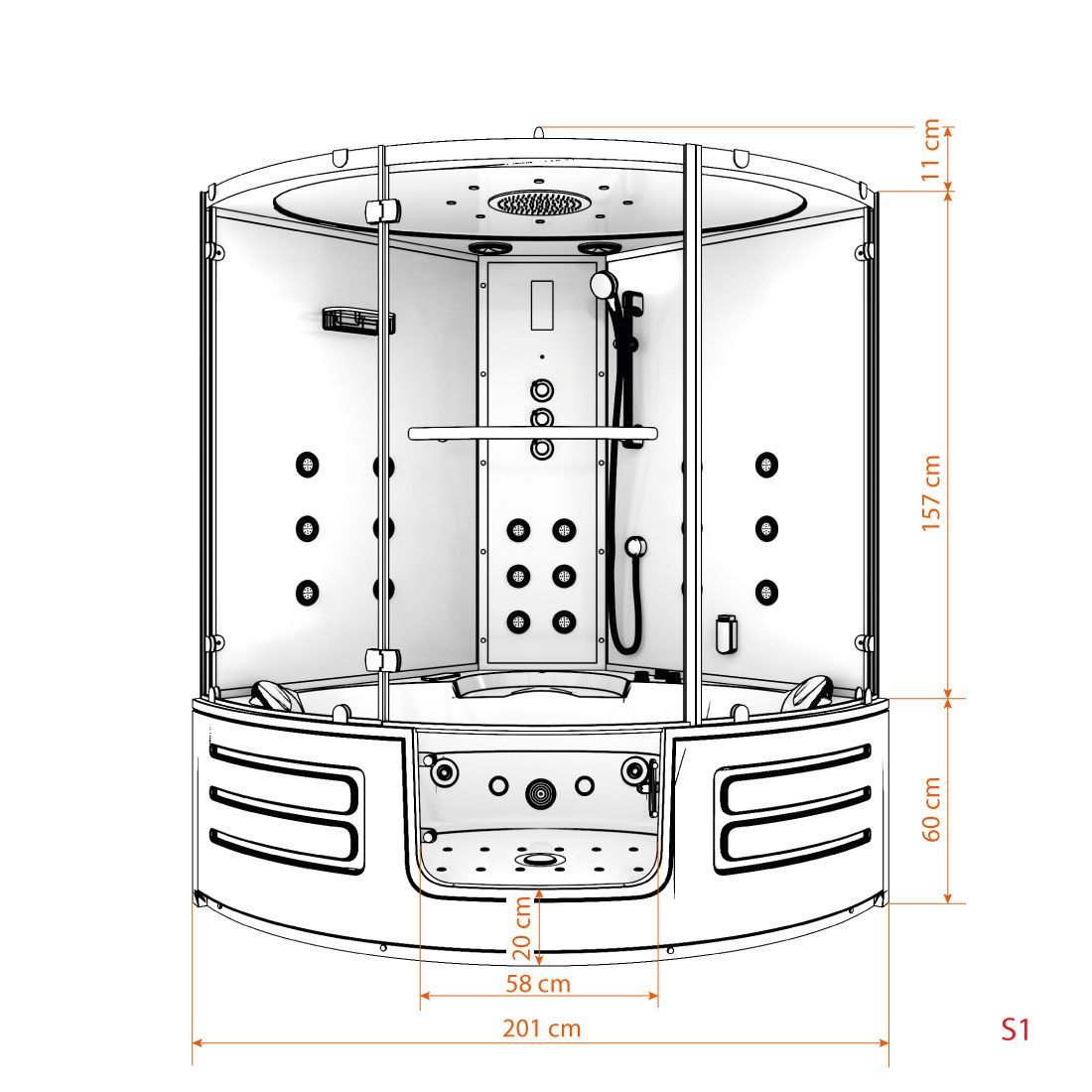 Dampfdusche Whirlpool Dusche Duschkabine K70-WS-TH 150x150cm