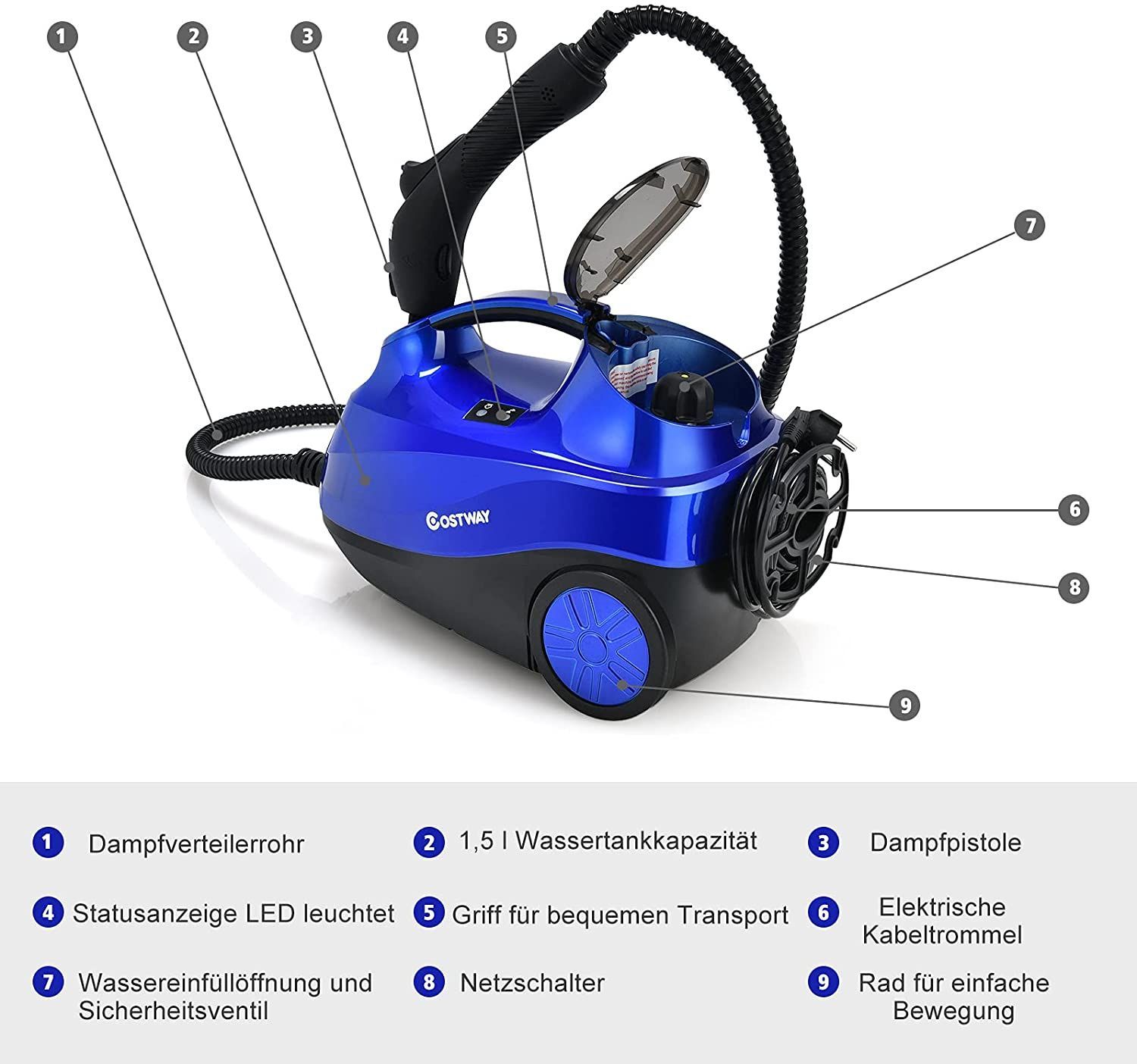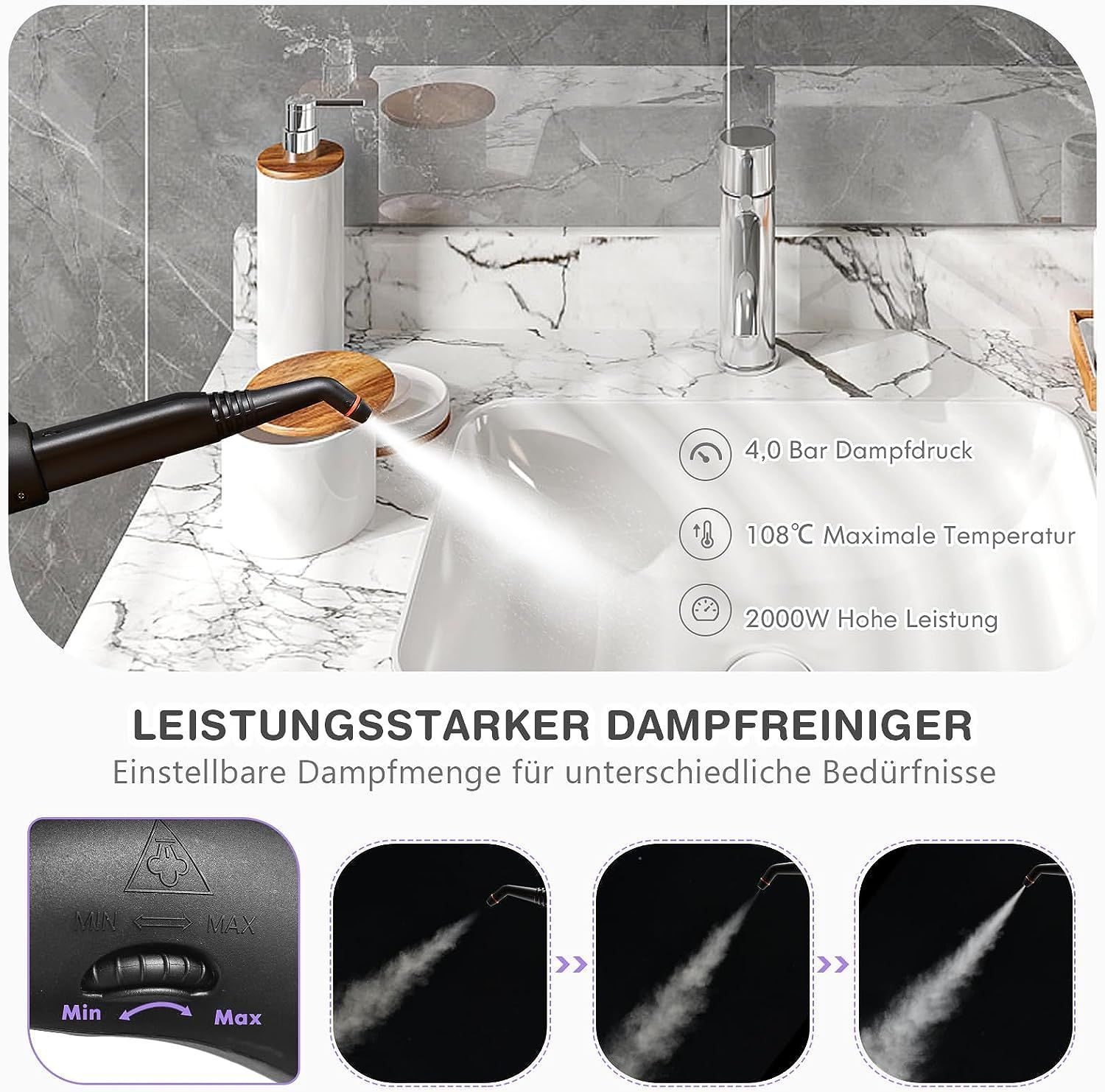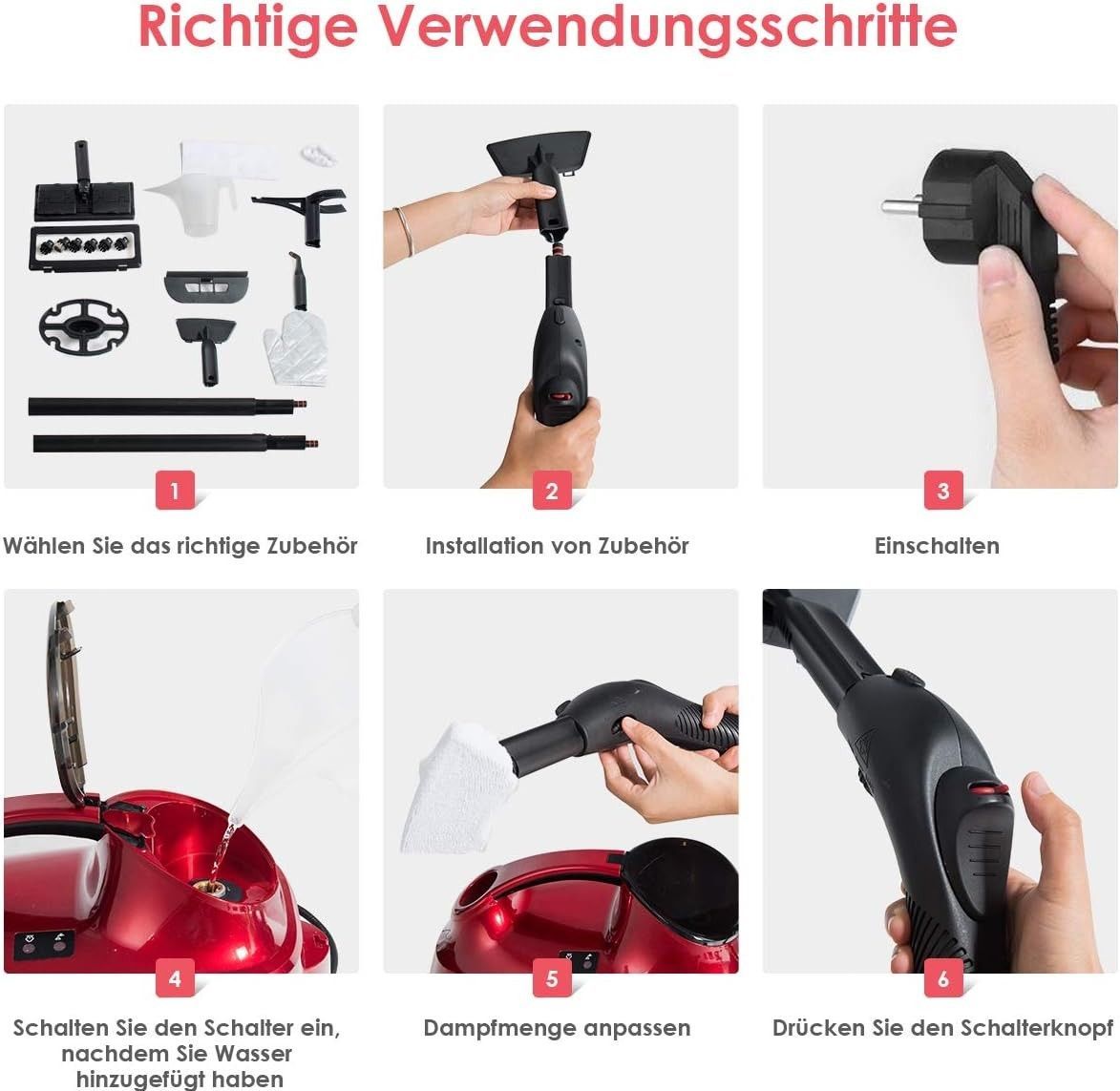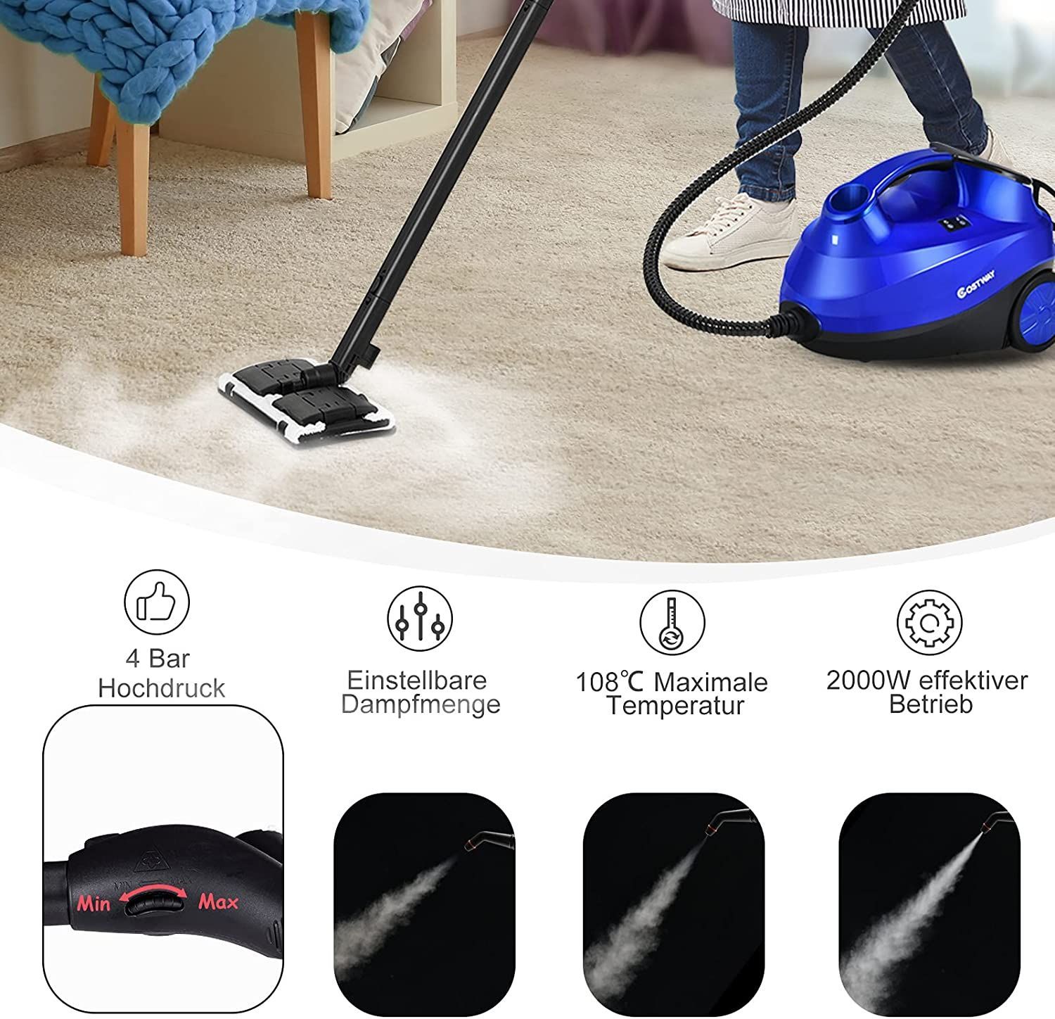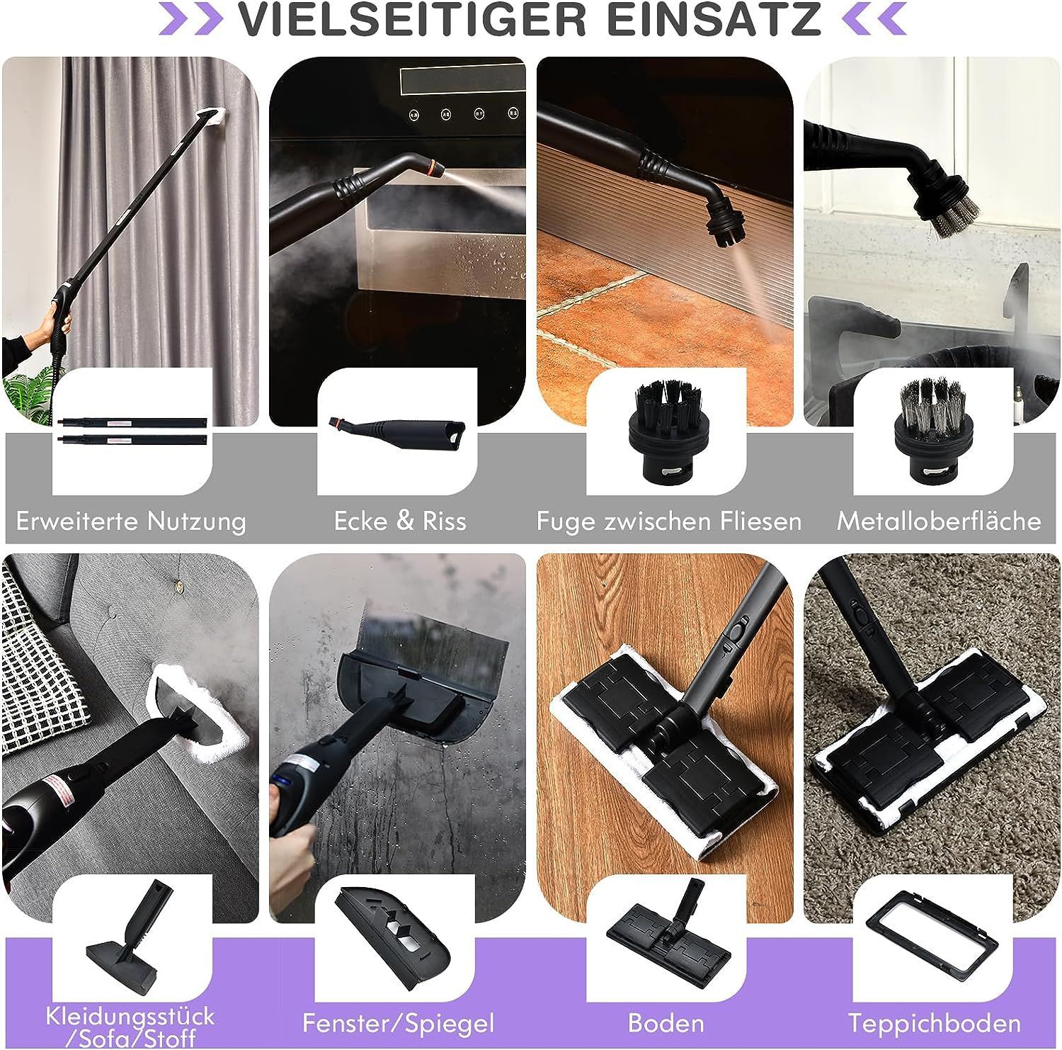 Dampfreiniger mit 19 Zubehörteilen, Bodendampfreiniger für Teppiche