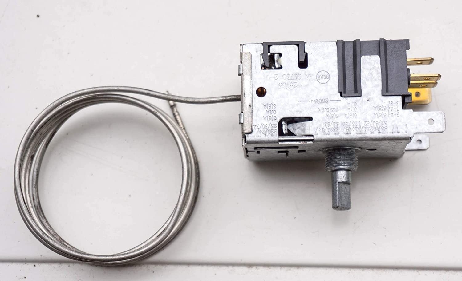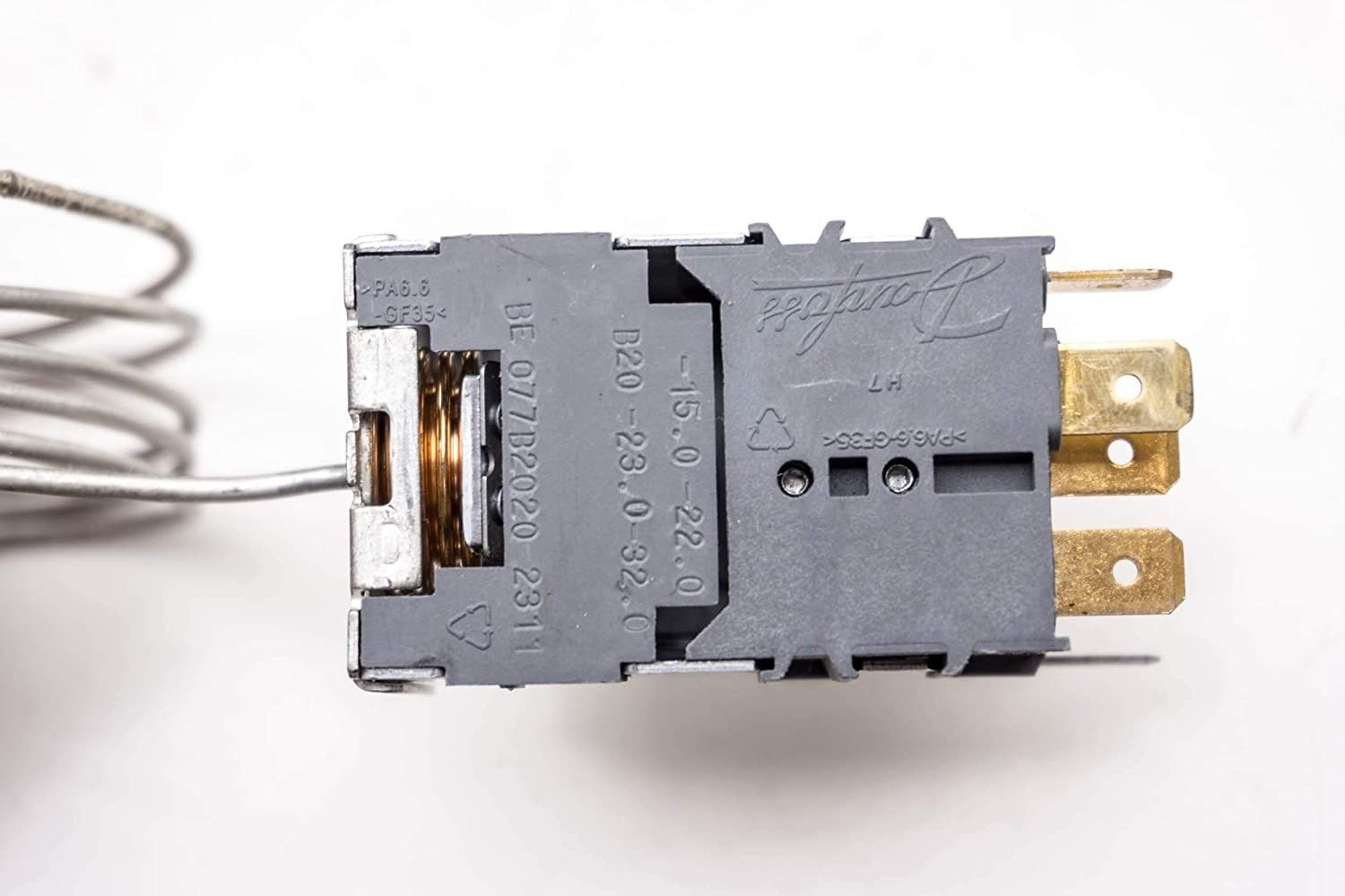 Thermostat Danfoss 25T65 077B2020 Gefrierschrank Gefriertruhe, Gefrierschrank, Geeignet Ersatz von:Indesit,Gorenje,Vestel,Whrilpool,Hotpoint CYLINDA,LEC, LUXOR, MIOSTAR, TECHWOOD, TUCSON, VESTFROST Kapillarrohrlänge: 800 mm Anschlussklemen: 6,3mm 4,8mm Function: Normal und normal mit Signal Kontakte... Mehr