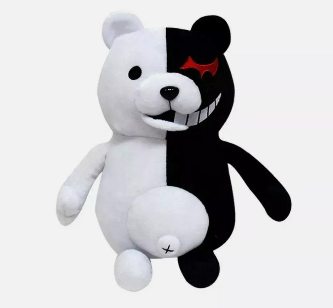 Monokuma Stofftier Zustand: "Neu". Material: 100% Polyester Grösse/Size: 25 cm Achtung! Nicht geeignet für Kinder unter drei Jahren, da der Artikel verschluckbare Kleinteile enthalten kann!