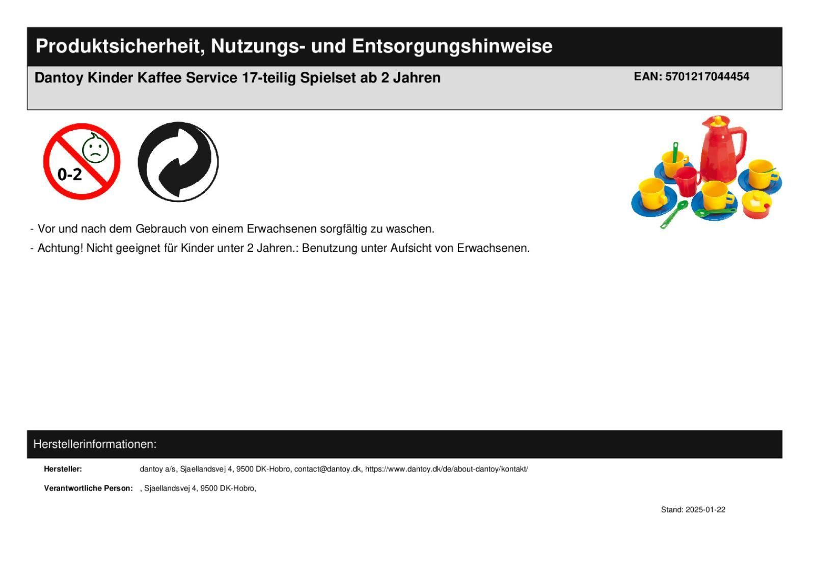 dantoy Dantoy Kinder Kaffee Service Set 17-teilig Tassen Geschirr Spielset ab 2 Jahren