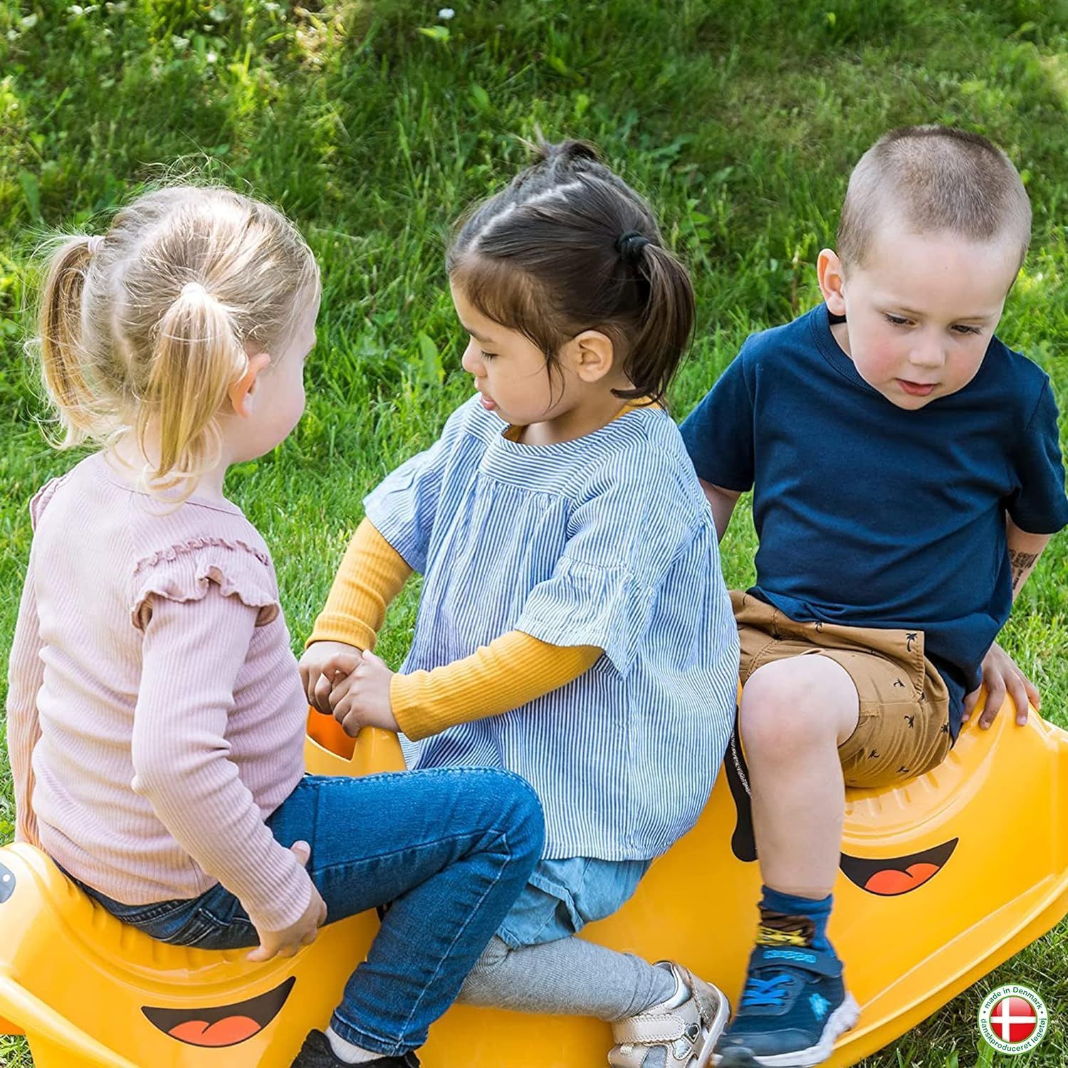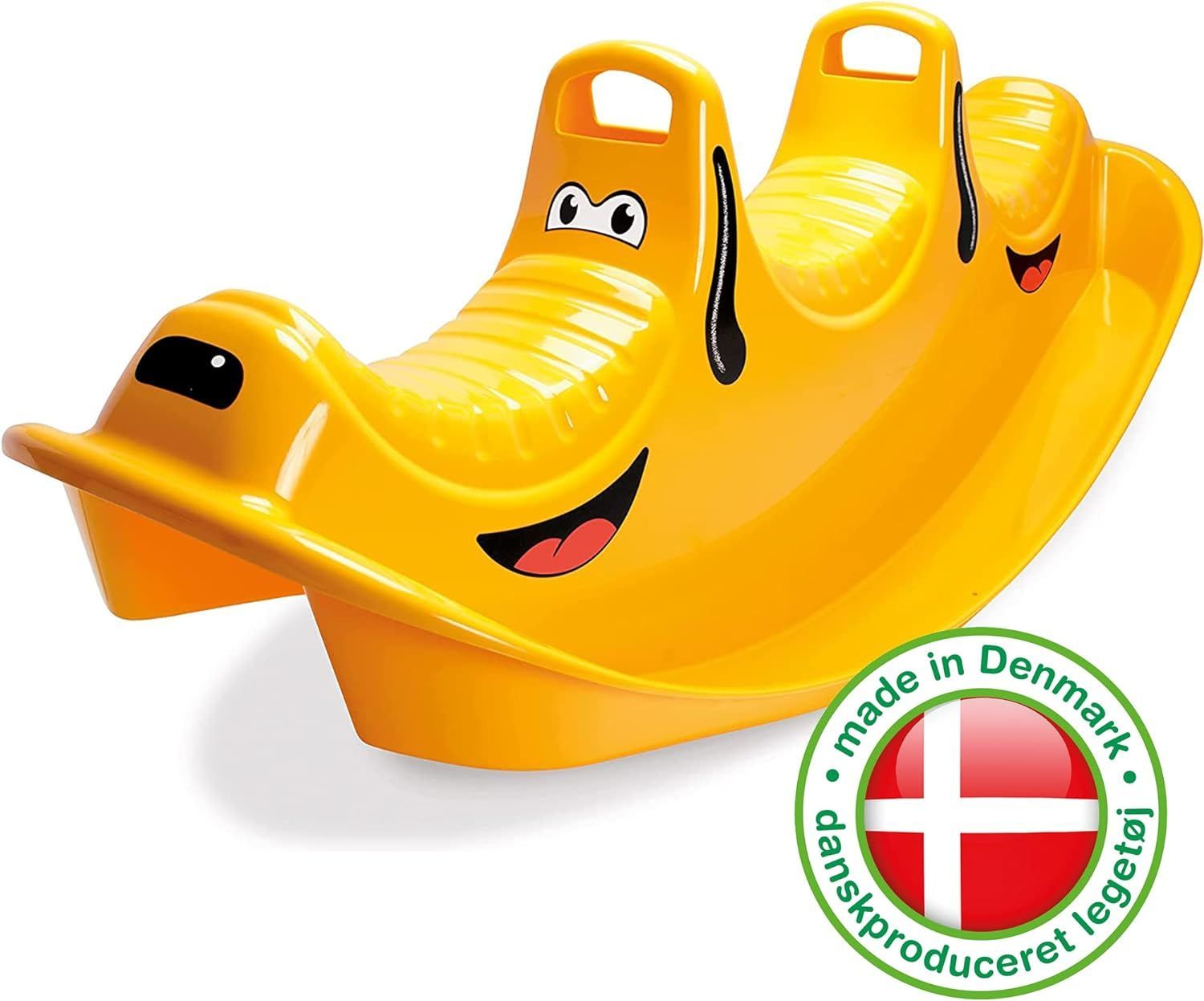 dantoy Dantoy Schaukelpferd gelb mit 3 Sitzen Wippe Kinderwippe für Kinder - 1–5 Jahre Hund