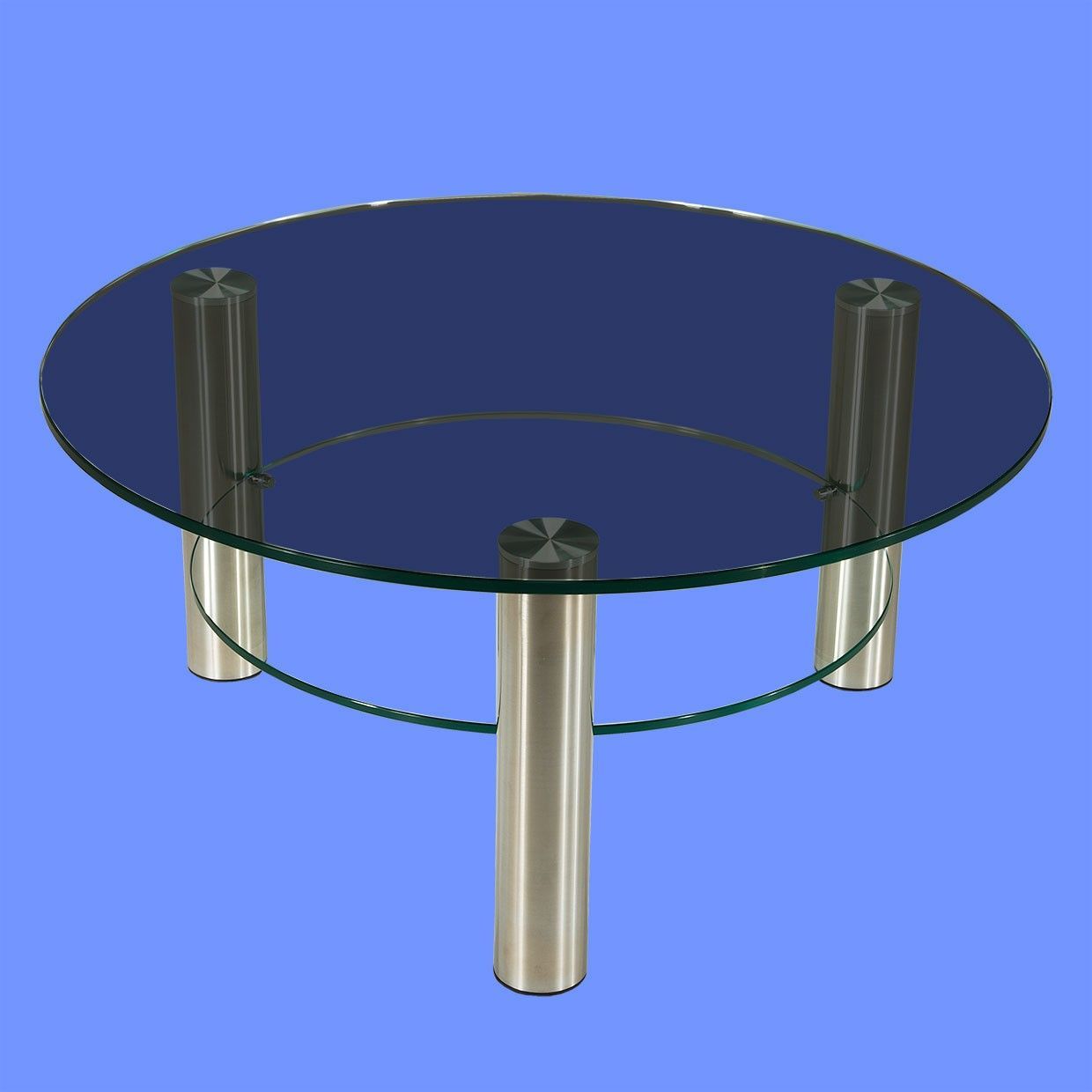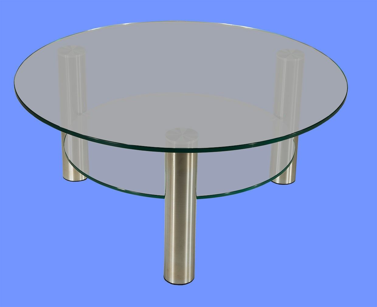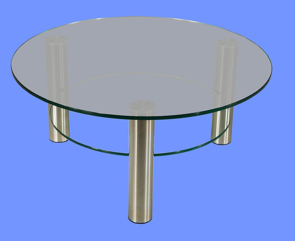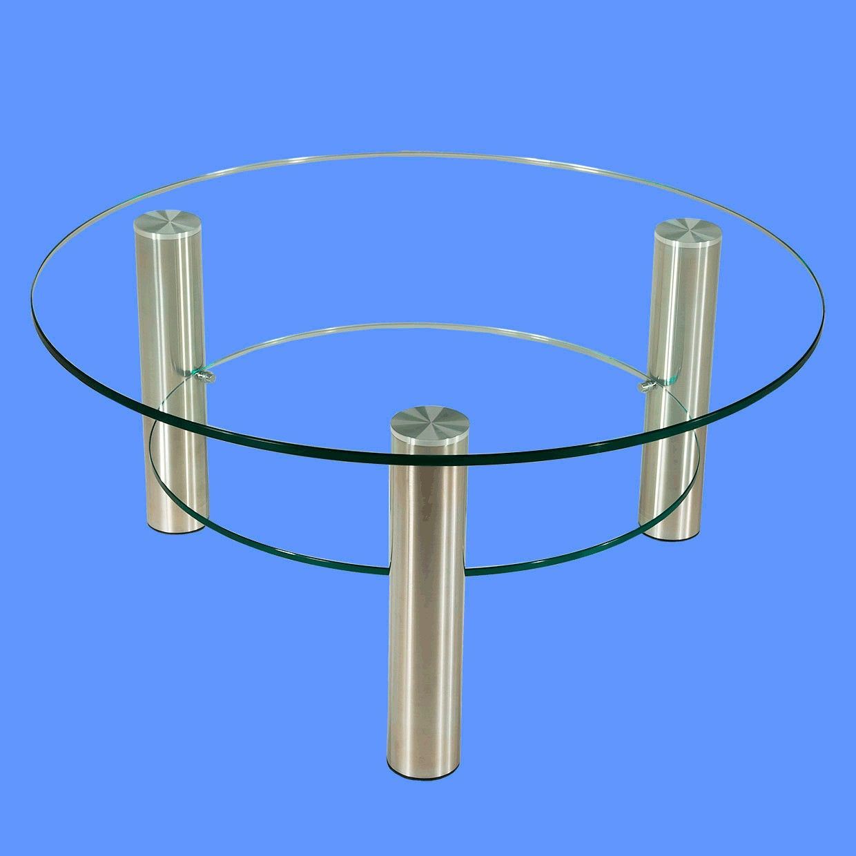 DAR-C2H Couchtisch rund Glasplatte mit Rollen und Ablage Chromstollen gebürstet
