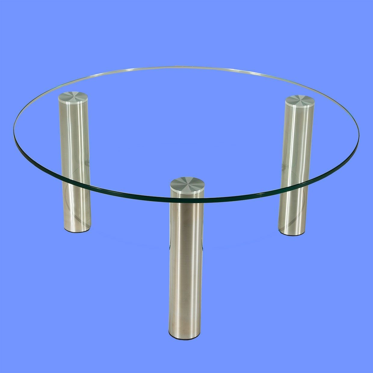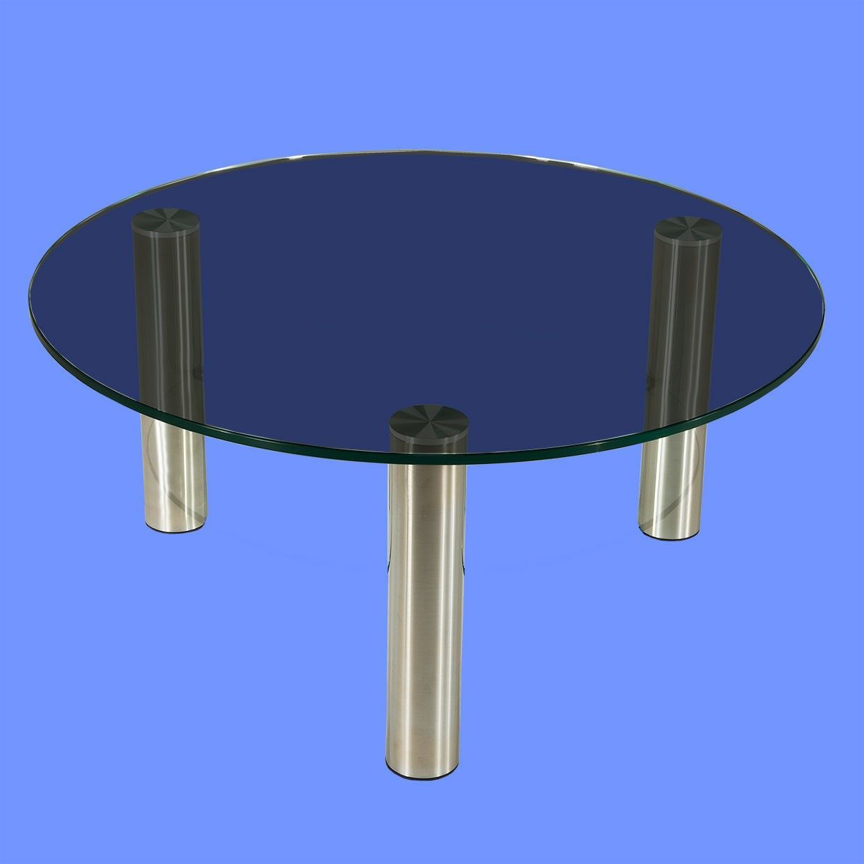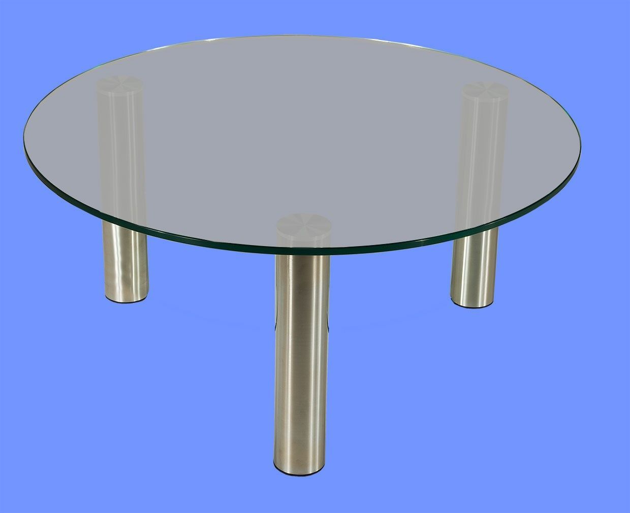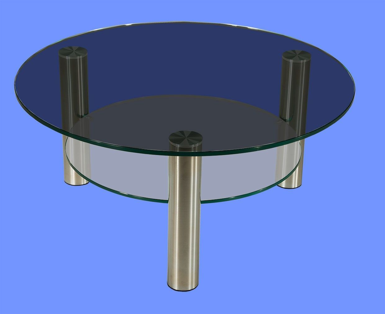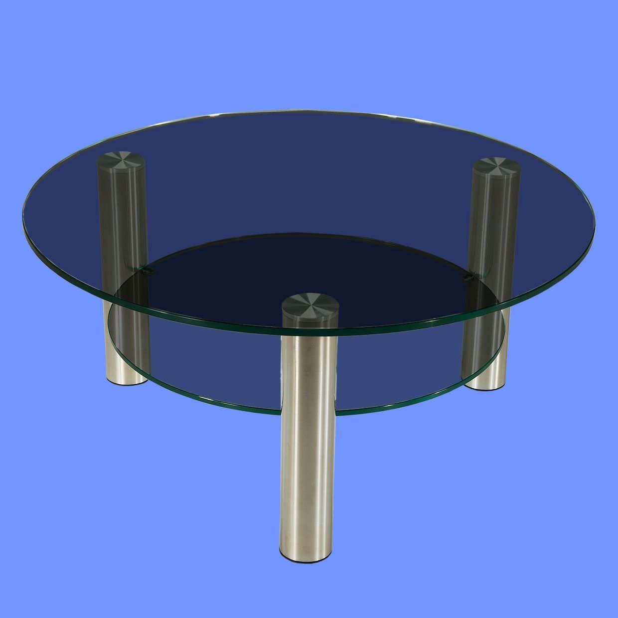 DAR-C2H Couchtisch rund Glasplatte mit Rollen und Ablage Chromstollen gebürstet