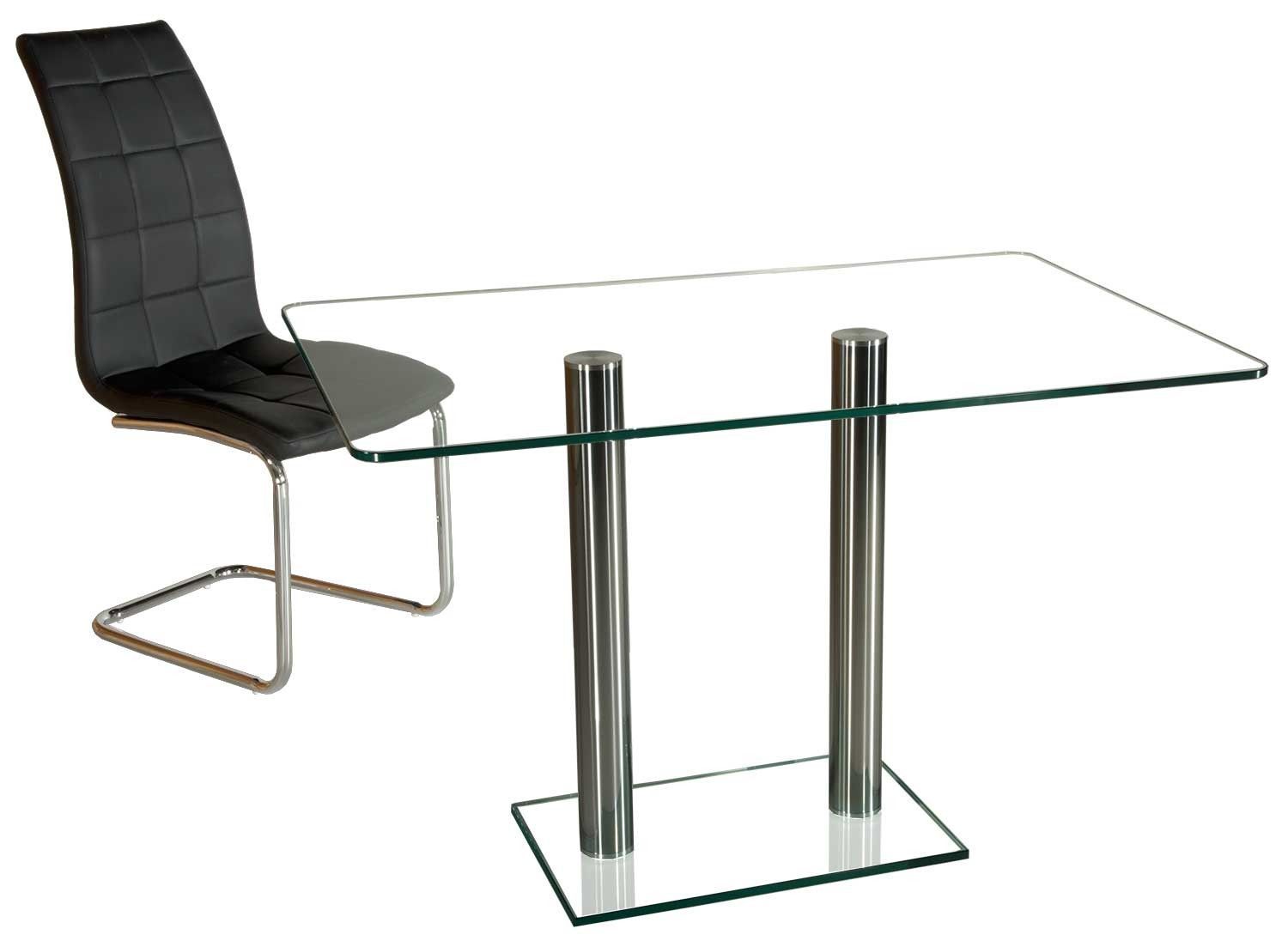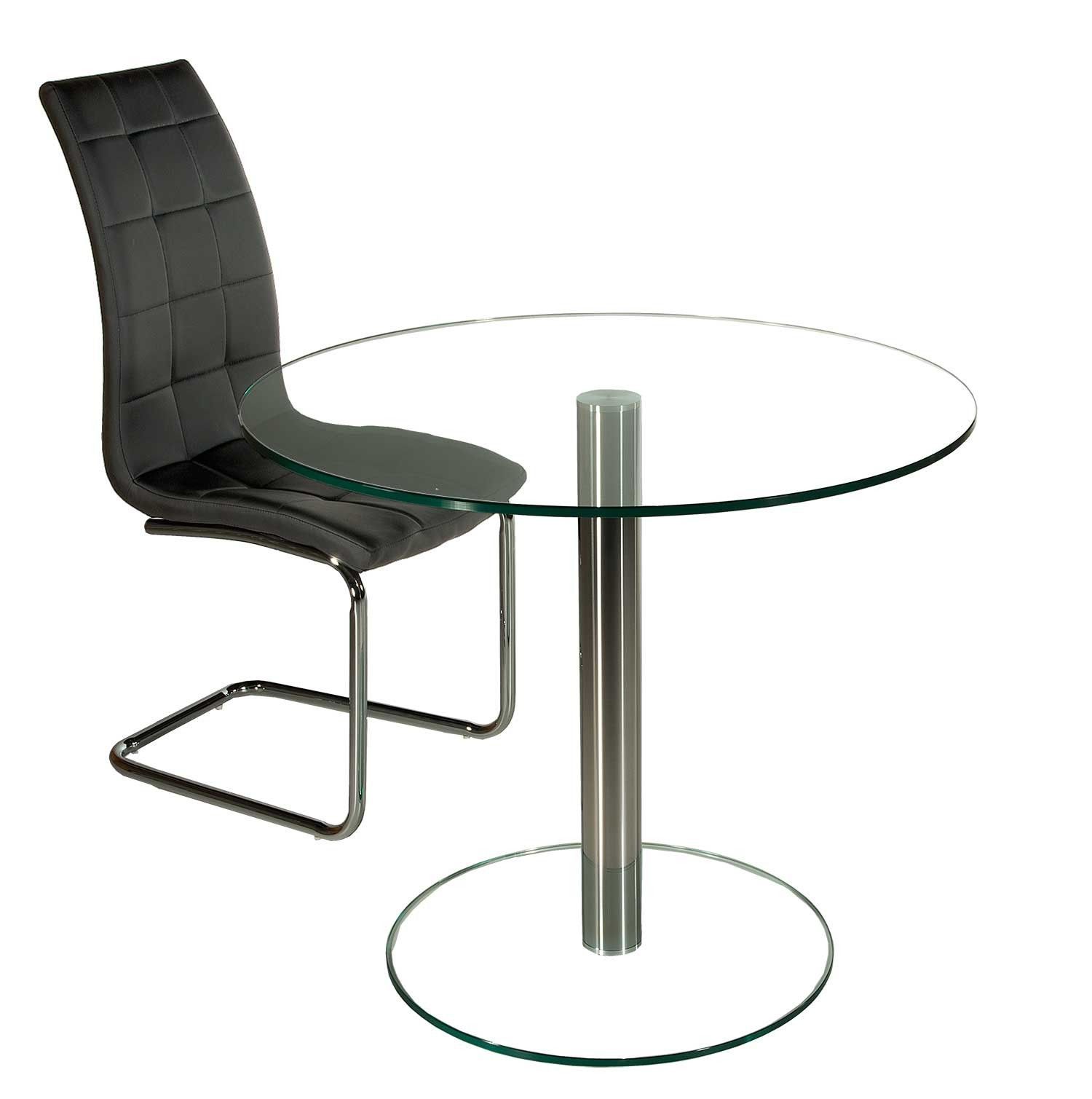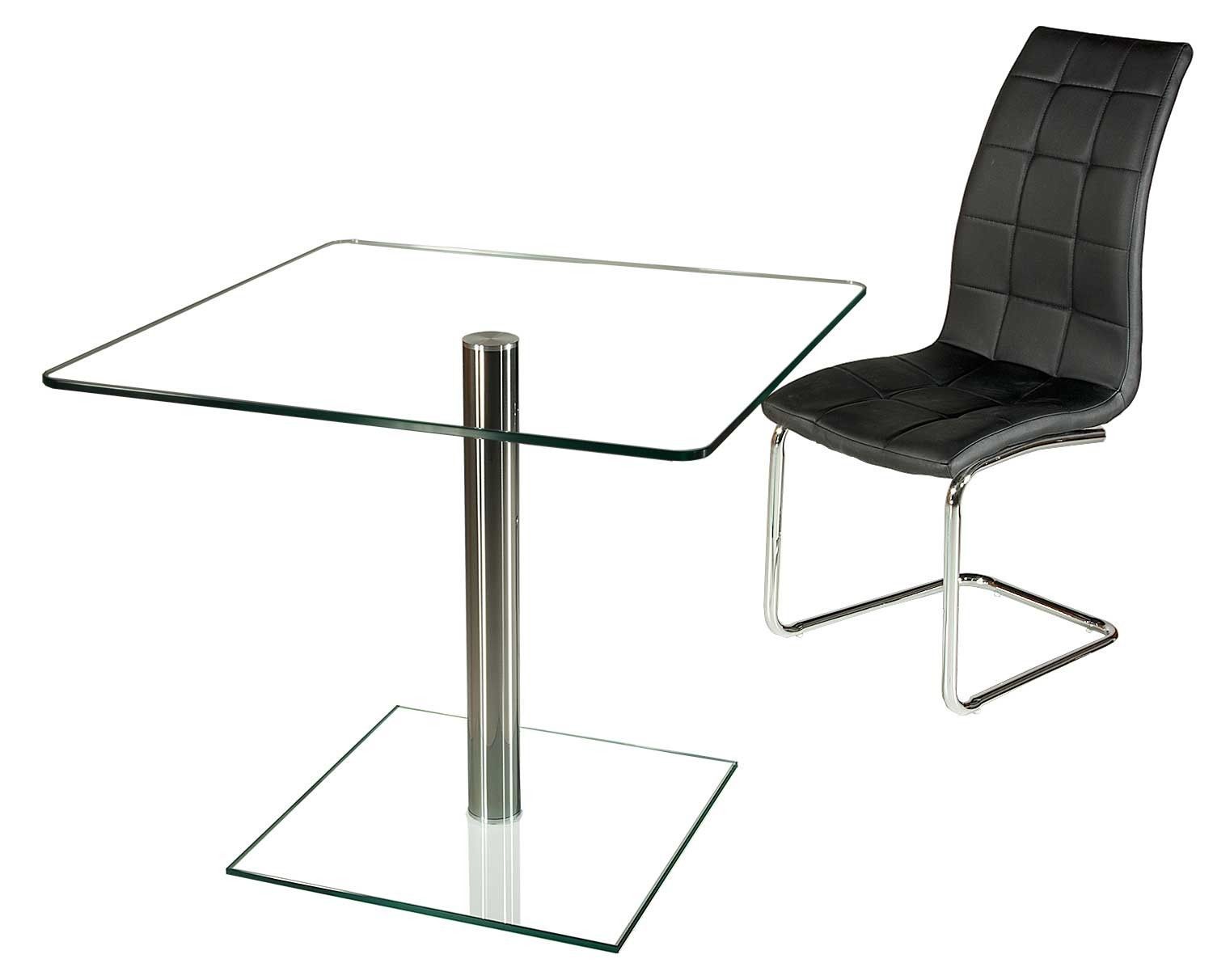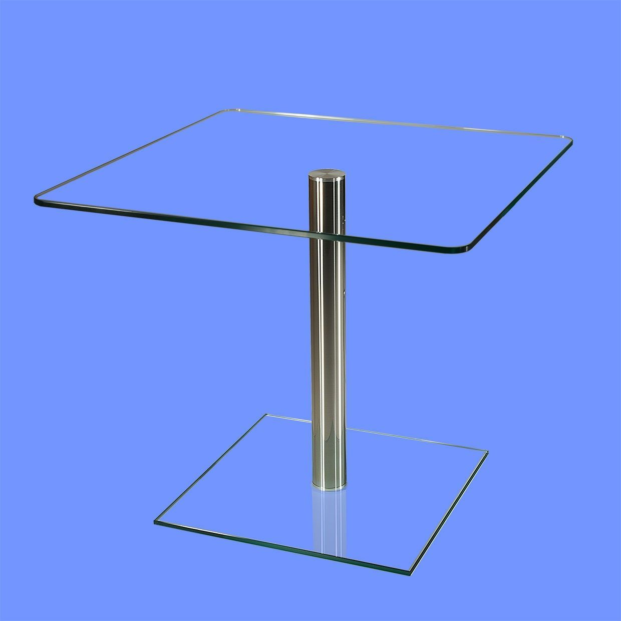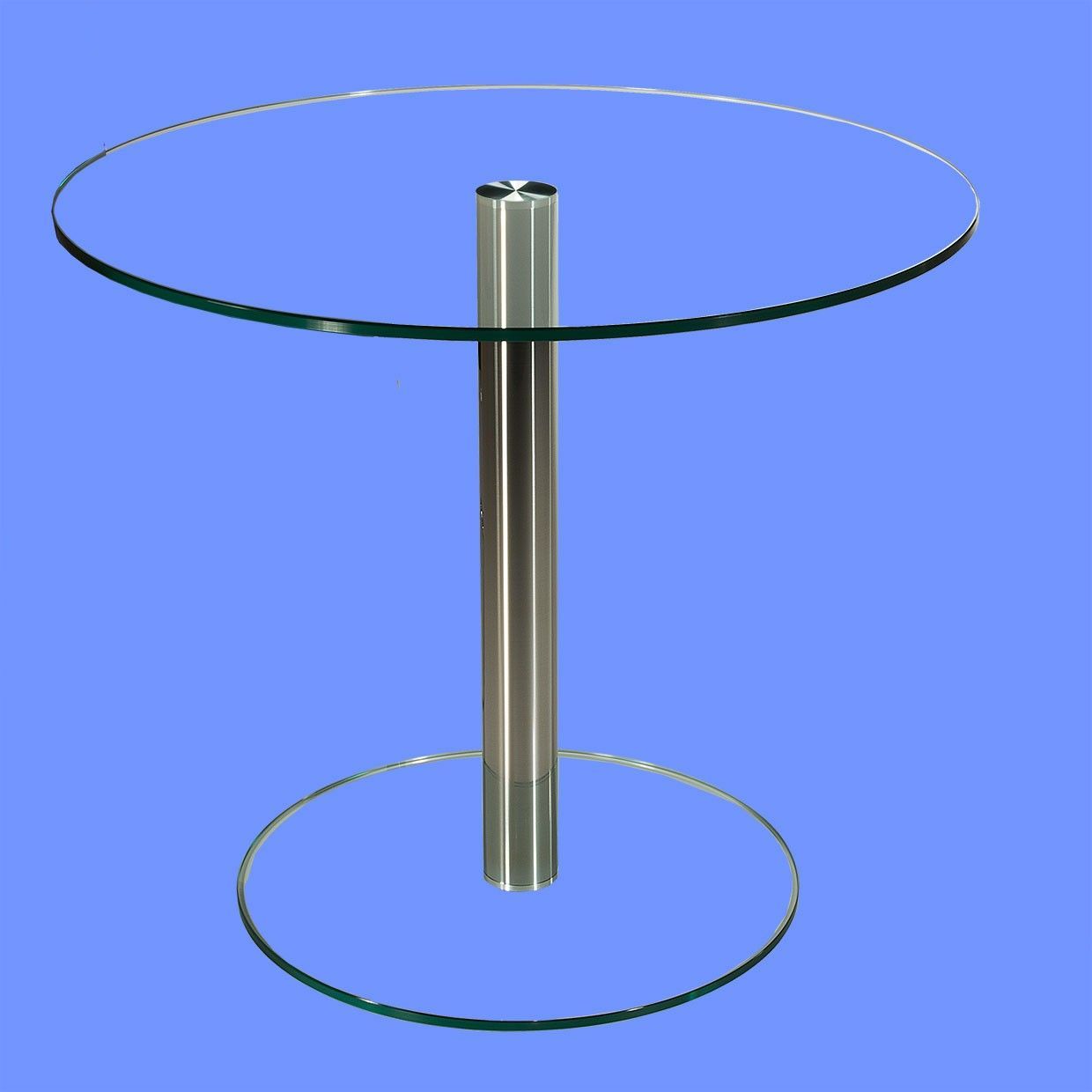 DAR-E12H Esstisch Klarglas 80mm Chromsäule 74cm Höhe rund + quadratisch rechteckig