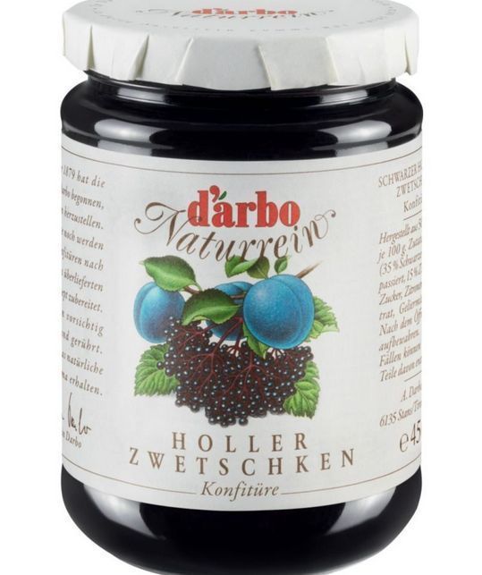 Darbo Schwarzer Holunder Zwetschken Konfitüre passiert 450g - 3 Stückzahlen Produktbeschreibung: Darbo Naturrein Konfitüren werden auf Grundlage eines alten Familienrezepts hergestellt. Damals wie heute werden nur hochwertige Früchte auf schonende Art und Weise erwärmt und gerührt. So bleibt das nat