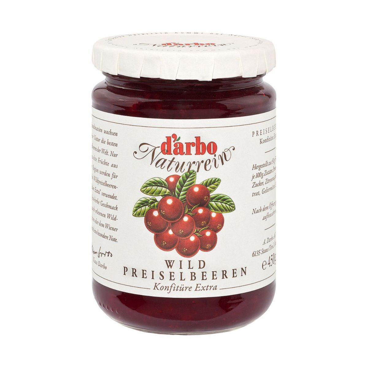 Darbo Wildpreiselbeeren Konfitüre Extra Naturrein Fruchtaufstrich 450g