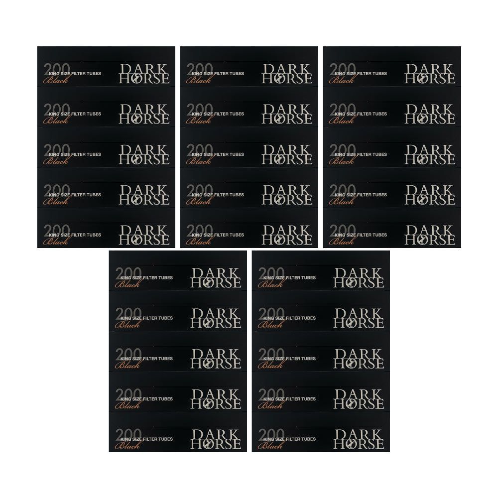 Dark Horse Black King Size Filterhülsen 25x 200 Stück Marke: Dark Horse Produktart: Filterhülsen Inhalt: 25 Packungen King Size Hülsen à 200 Stück Besonderheiten: Die Filterhülsen sind komplett schwarz. Der Filter selbst ist weiß. Standard King Size Filterhülsen: Länge = 84 mm Filterlänge = 15 mm Du