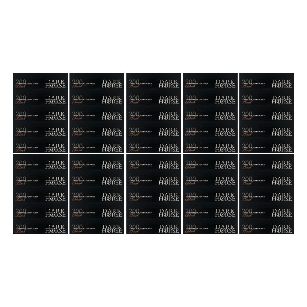 Dark Horse Black King Size Filterhülsen 50x 200 Stück Marke: Dark Horse Produktart: Filterhülsen Inhalt: 50 Packungen King Size Hülsen à 200 Stück Besonderheiten: Die Filterhülsen sind komplett schwarz. Der Filter selbst ist weiß. Standard King Size Filterhülsen: Länge = 84 mm Filterlänge = 15 mm Du