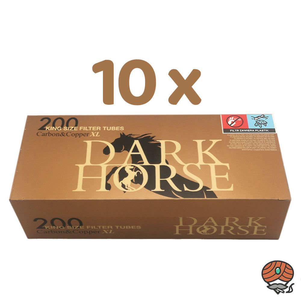 Dark Horse Carbon & Copper XL Filterhülsen 2000 Stück Marke: Dark Horse Produktart: Filterhülsen Inhalt: 10 Packungen Extra-Hülsen à 200 Stück Besonderheiten: Die Filterhülsen haben einen Aktivkohlefilter und sind von außen komplett kupferfarben. Extra King Size Filterhülsen: Länge = 84 mm Filterlän