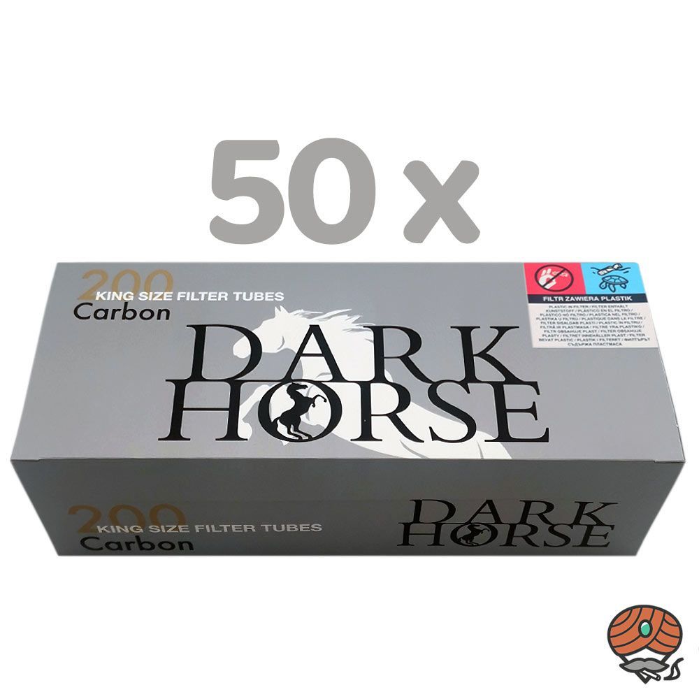 Dark Horse Carbon King Size Filterhülsen 10000 Stück Marke: Dark Horse Produktart: Filterhülsen Inhalt: 50 Packungen King Size Hülsen à 200 Stück Besonderheiten: Die Filterhülsen haben einen Aktivkohlefilter. Standard King Size Filterhülsen: Länge = 84 mm Filterlänge = 15 mm Durchmesser = 8,1 mm Die