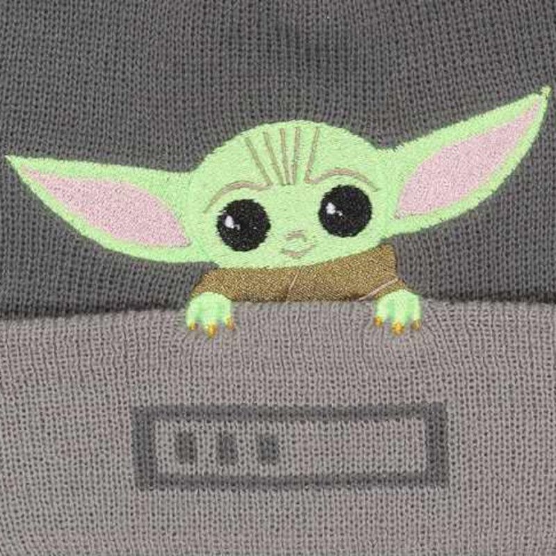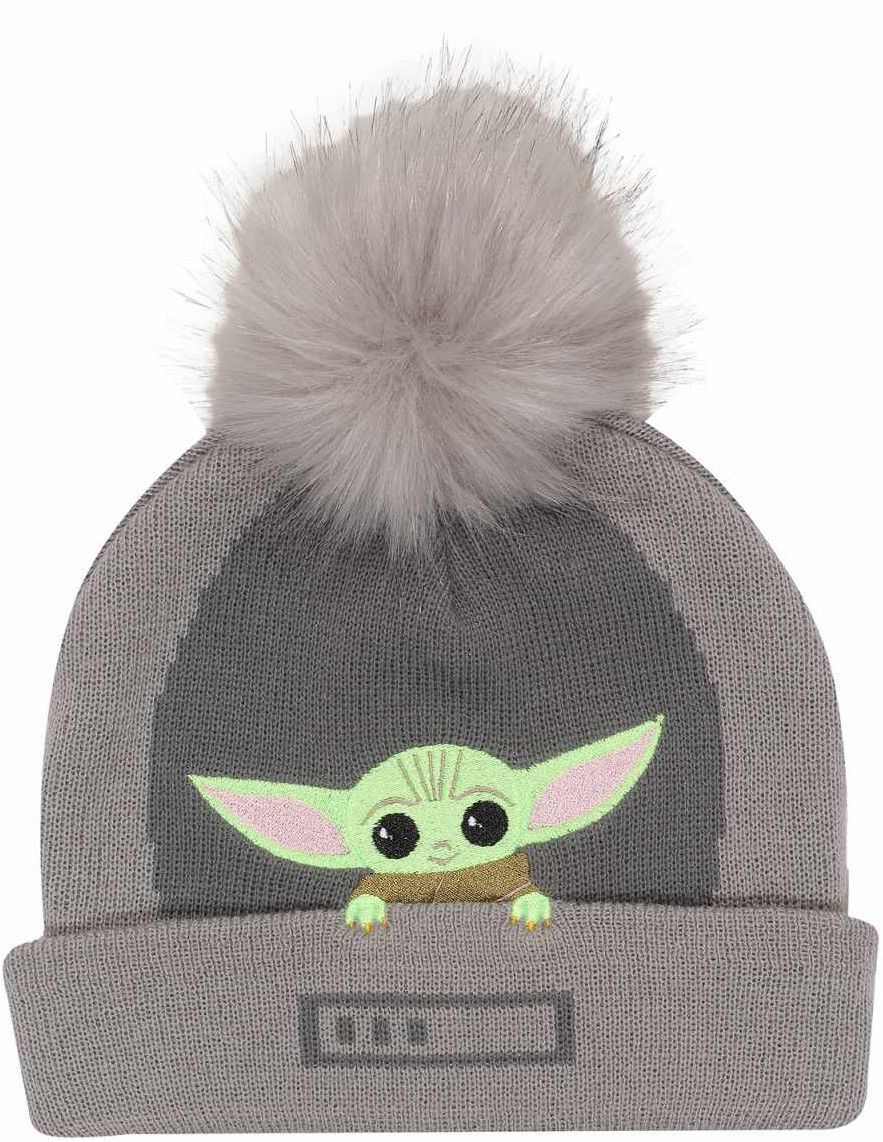 Star Wars Das Kind/ Baby Yoda The Mandalorian Star Wars Graue Mütze mit Kunstfell-Bommel