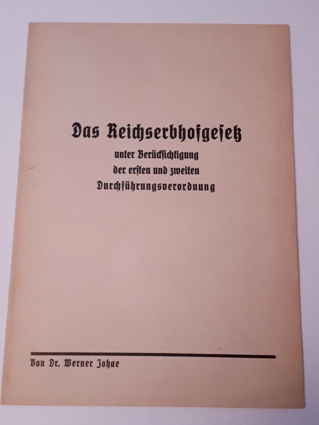 Dr.Werner Johae Das Reichserbhofgesetz... R. ....unter Berücksichtigung der ersten und zweiten Durchführungsverordnung * Seitenanzahl: 19 Zustand: gut - gebraucht mit einigen Gebrauchsspuren