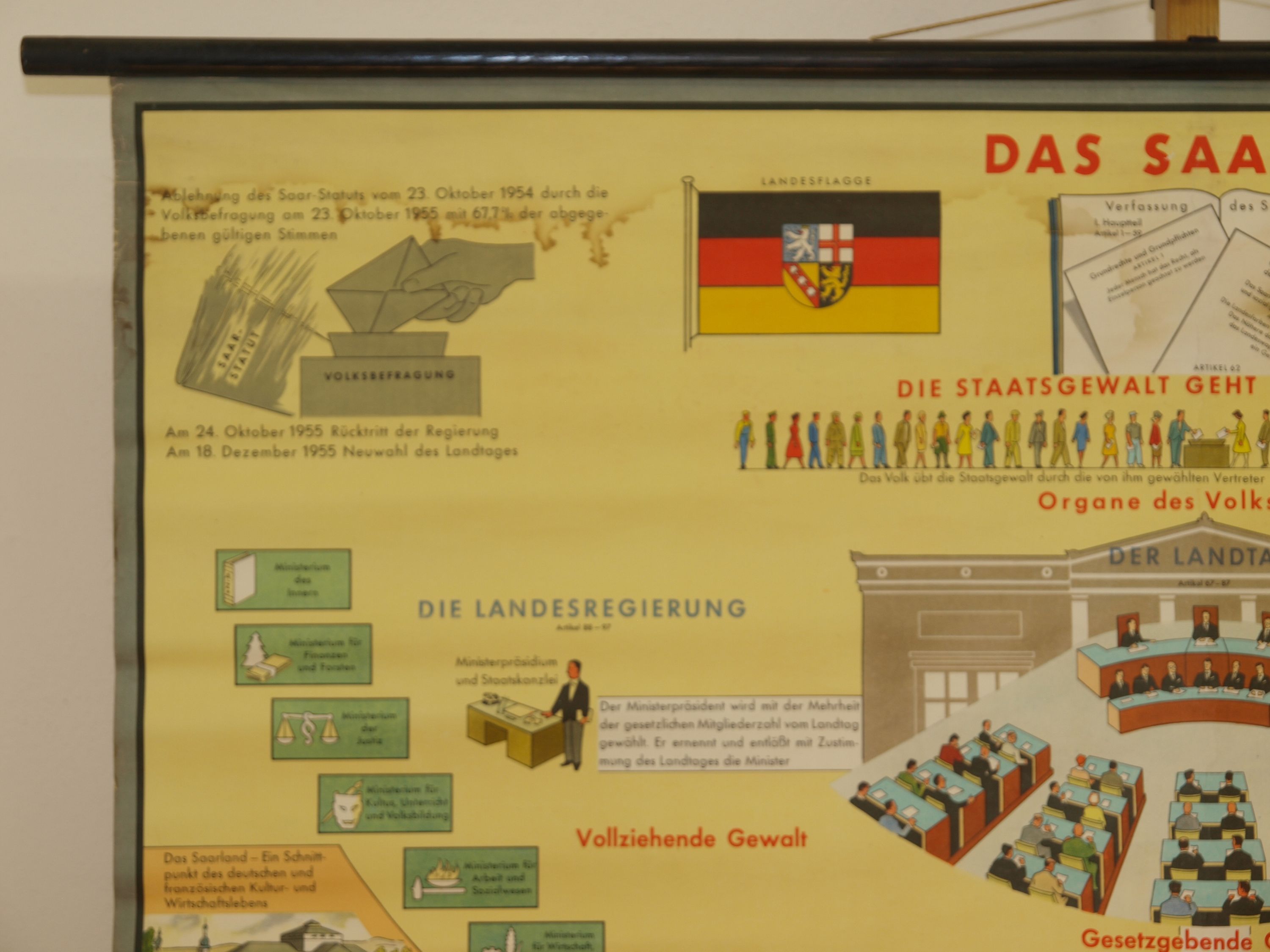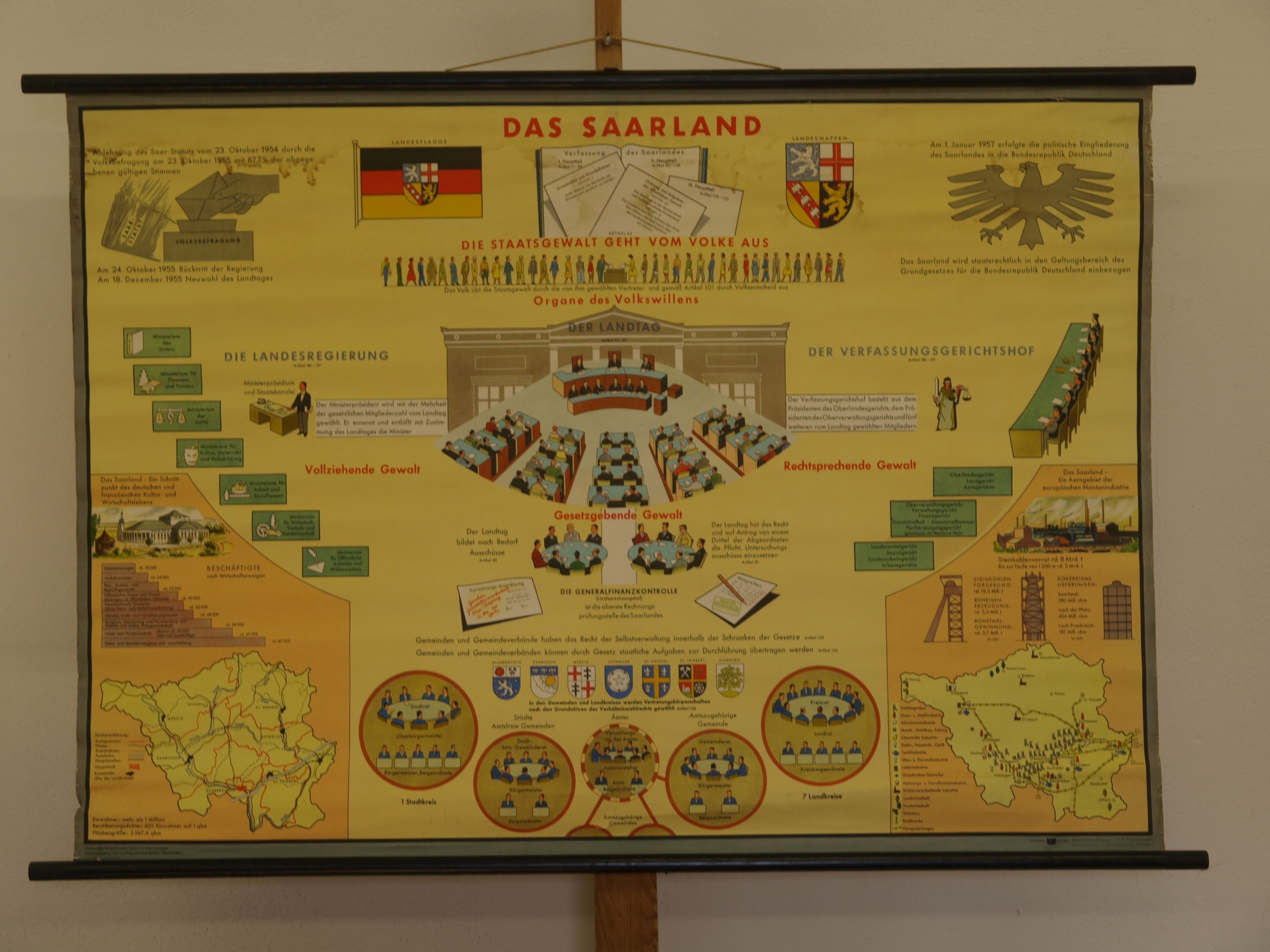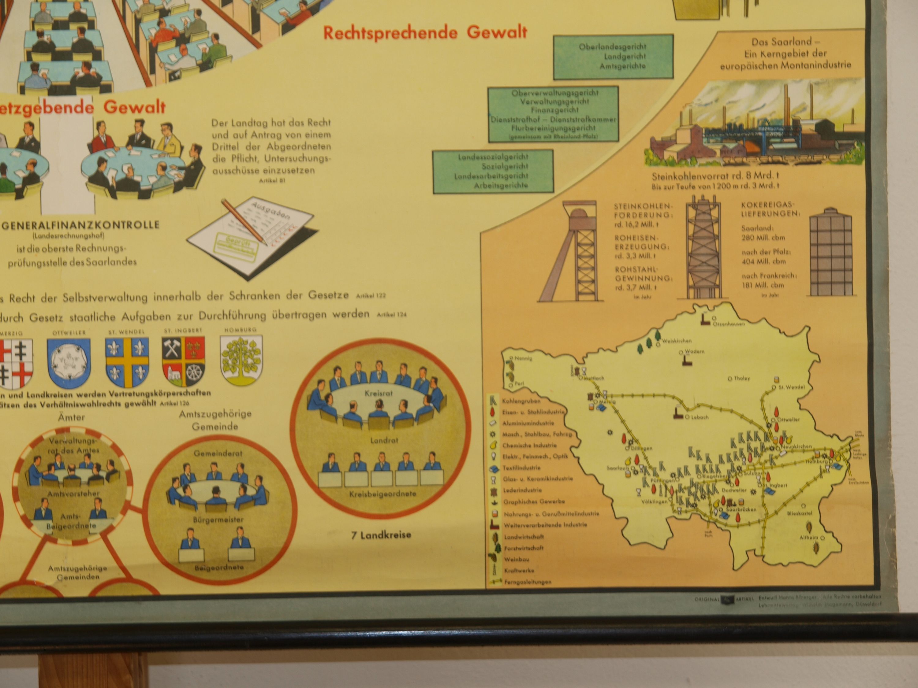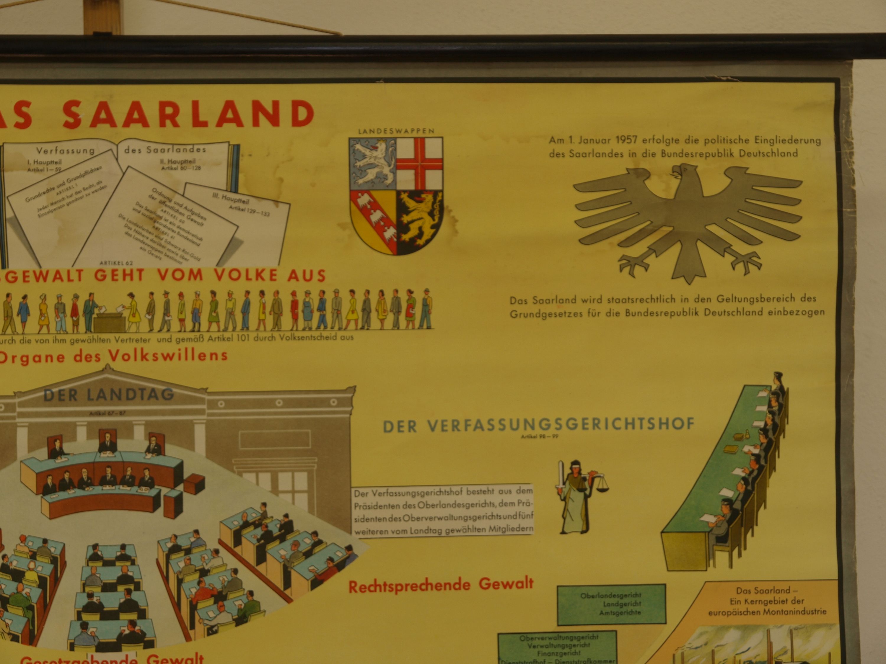 Das Saarland Verwaltung Wirtschaft Wappen 1960 Schulwandbild Wandbild 116x82cm