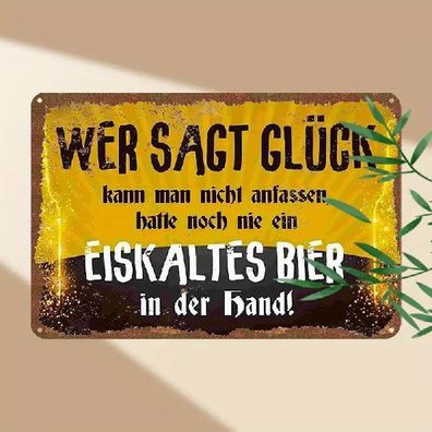 • Blechschild Glück anfassen eiskaltes Bier Vintage Nostalgie Metallschild TE2728