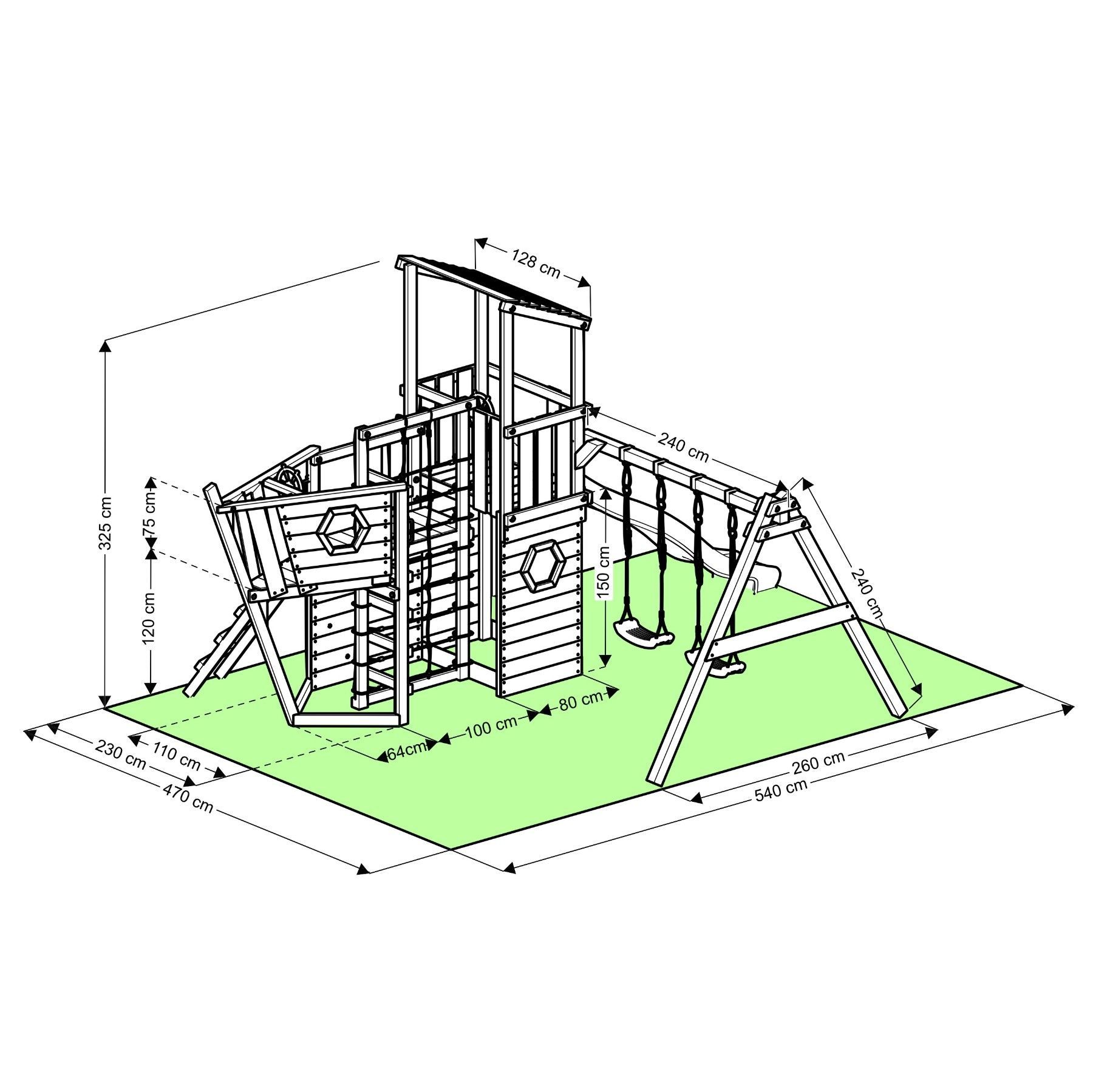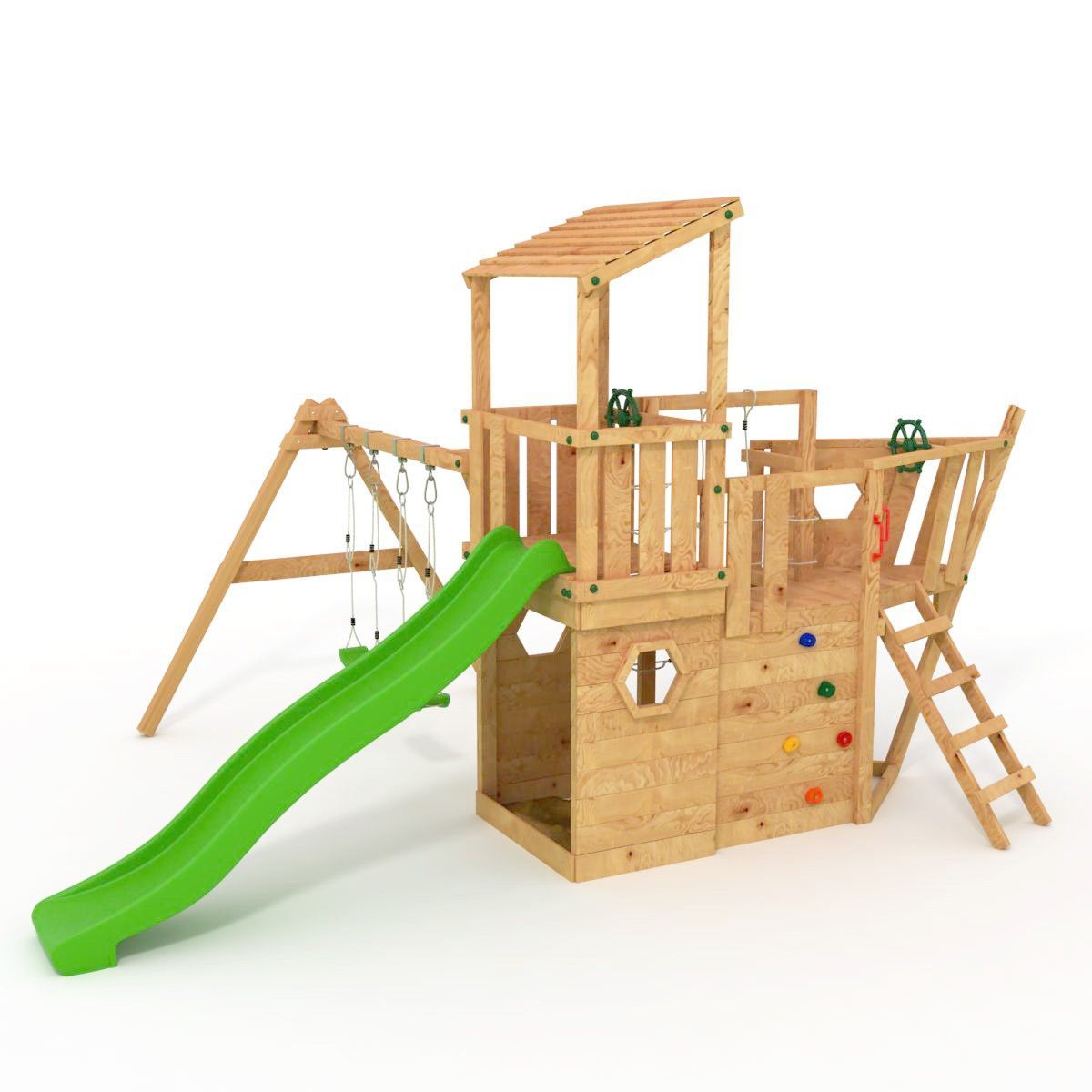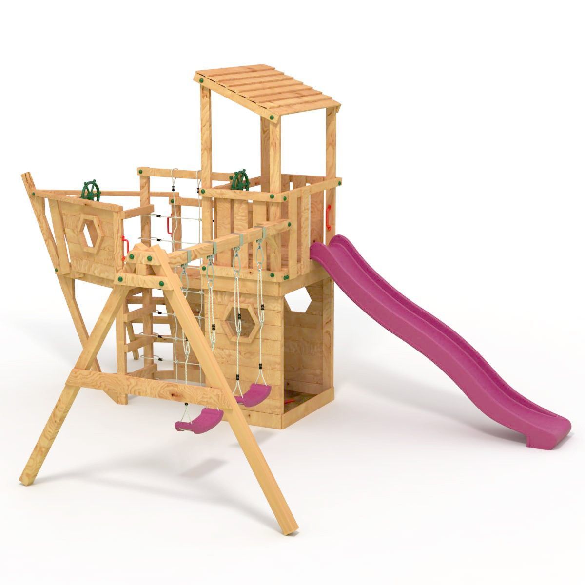 Das XL150-Piratenschiff - Spielturm - Klettergerüst - lange Rutsche - Doppelschaukel