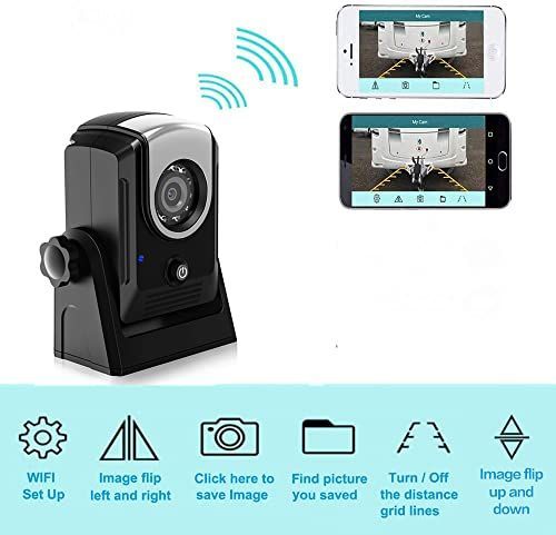 Über diesen Artikel Wasserdichte kabellose Rückfahrkamera: hochauflösender Farbsensor, super IP68 wasserdicht und 640 (H) x 480 (V) Pixel, sehr klares Rückfahrtagesbild verfügbar. Einfach zu installieren und einfach zu verwenden mit magnetischem Sockel: Die Fahrzeug-Rückfahrkameras mit WLAN sind mit