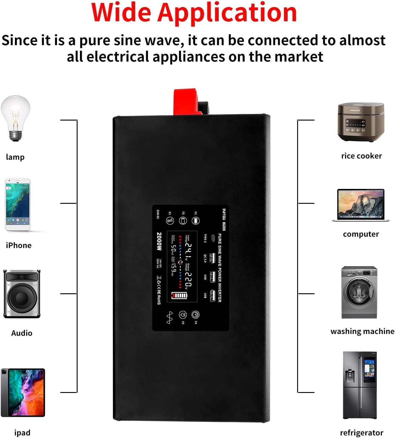 Datouboss Reiner Sinus Wechselrichter Dc 24V zu Ac 220V 2000W Benutzerhandbuch