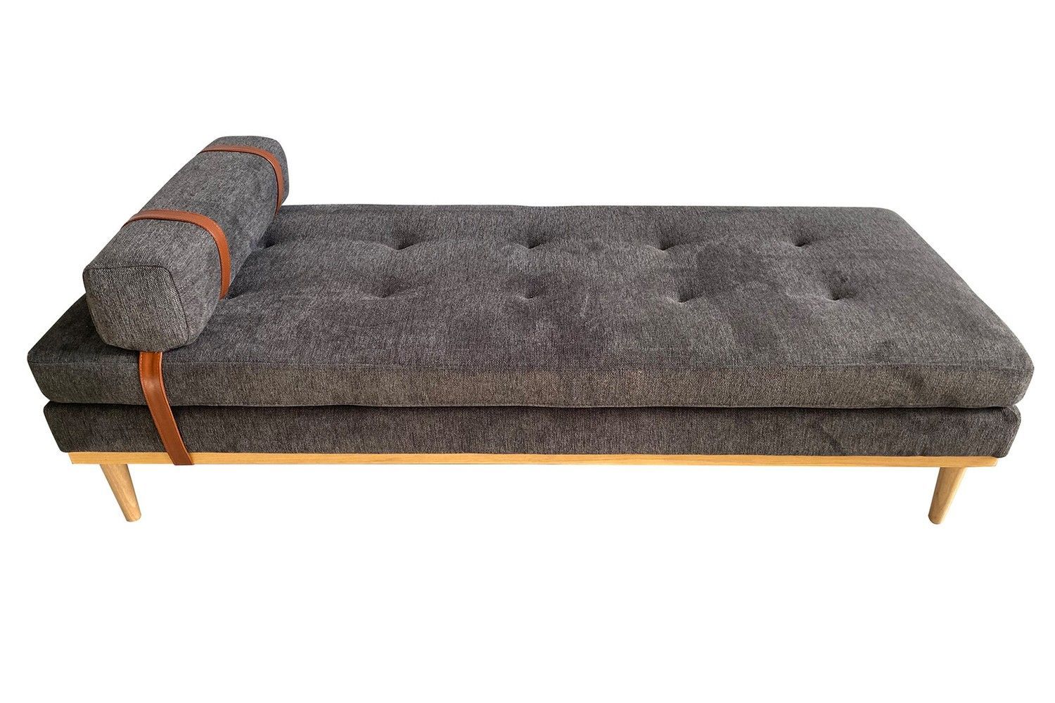 Daybed Anthrazit 180 x 75 cm mit Strukturstoff und Beinen aus Heveaholz
