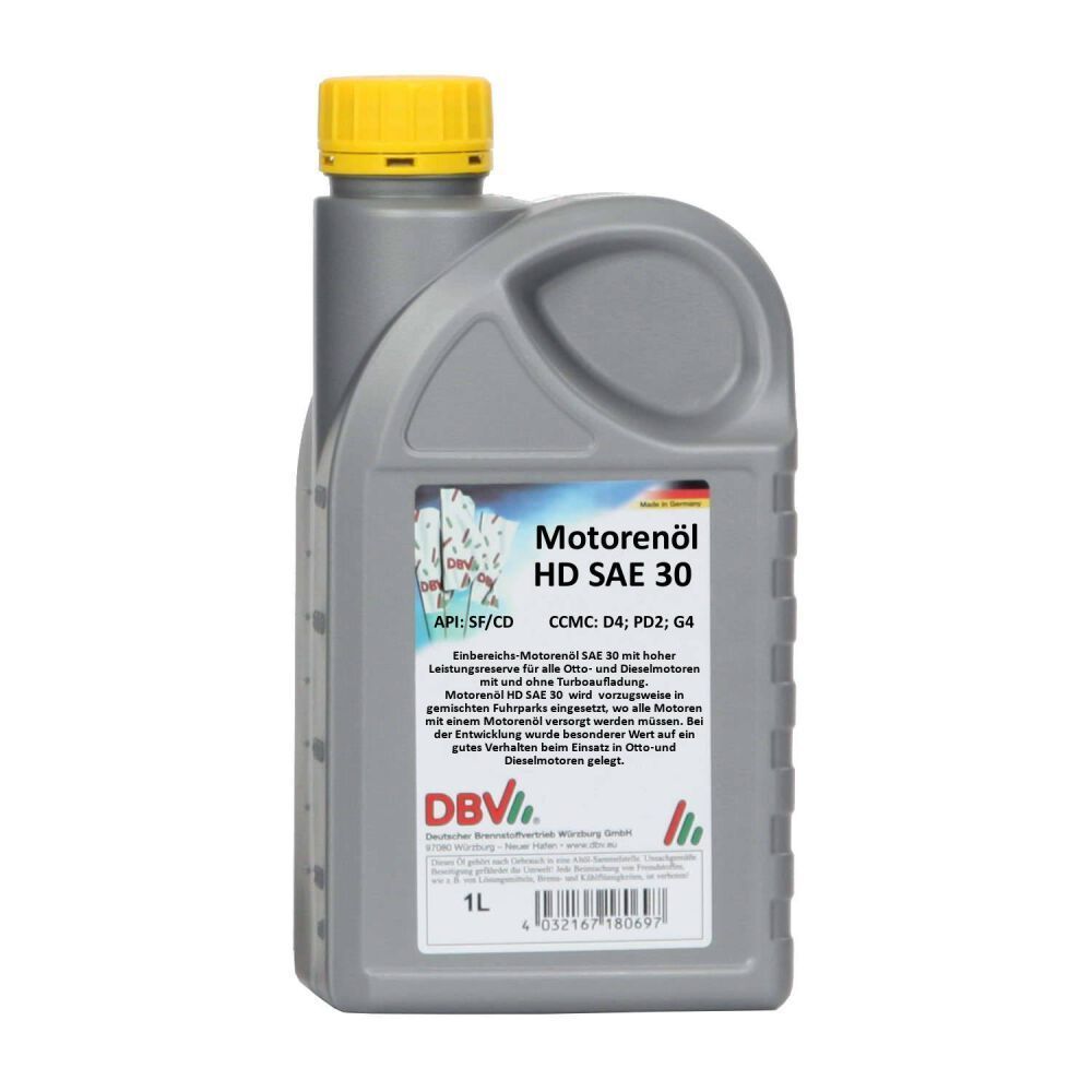 DBV Motorenöl HD SAE 30 20 x 1-Liter-Dose