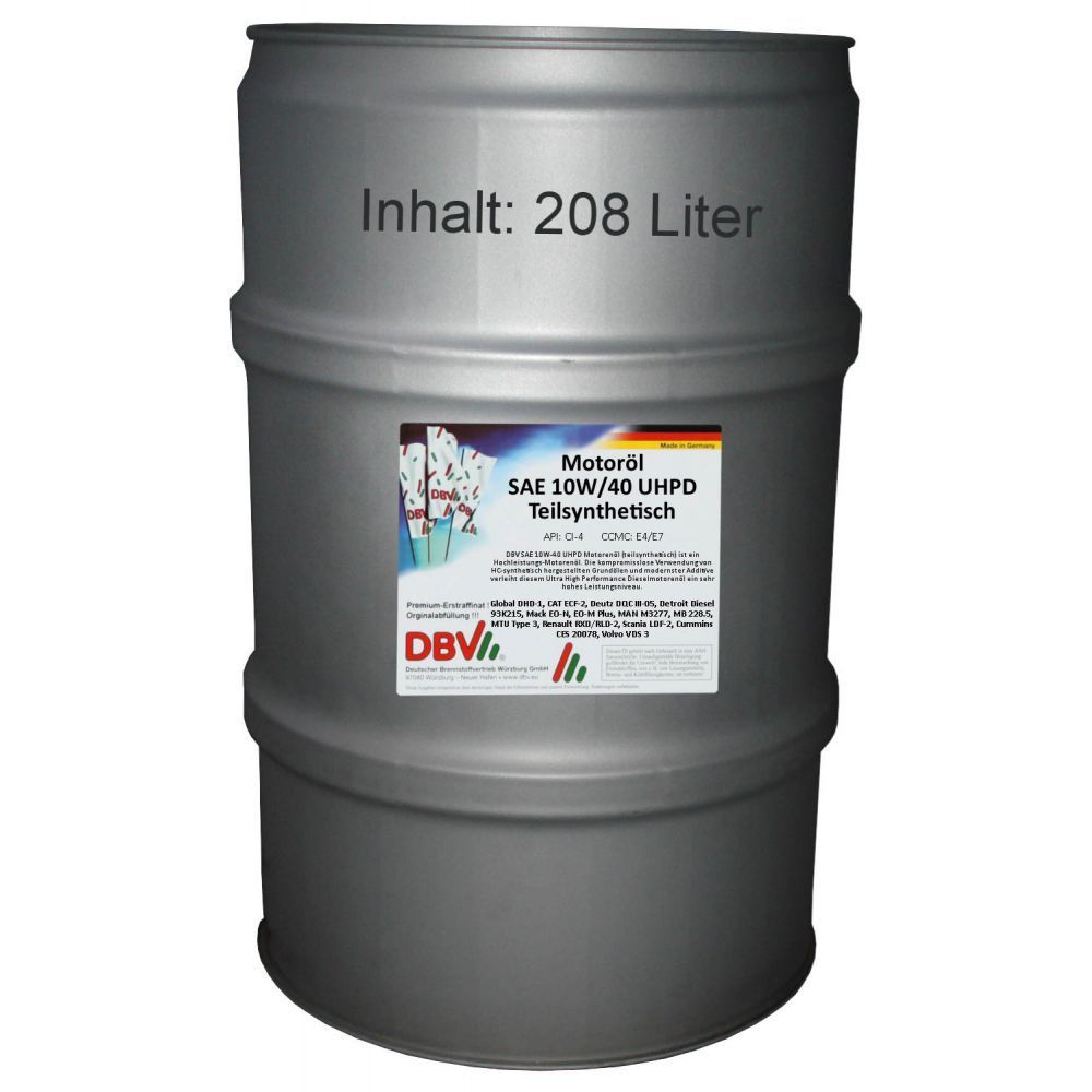 DBV SAE 10W/40 UHPD teilsynthetisch (Intervalle 80.000 bis 120.000 Km) 208-Liter-Fass