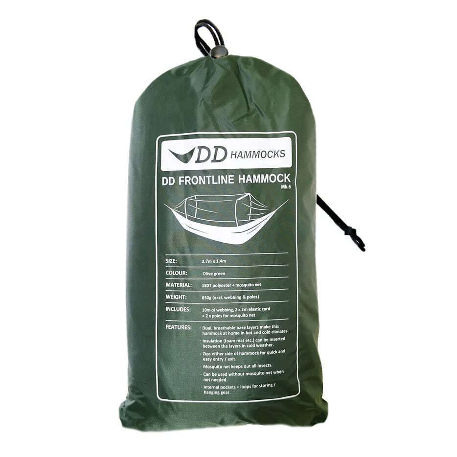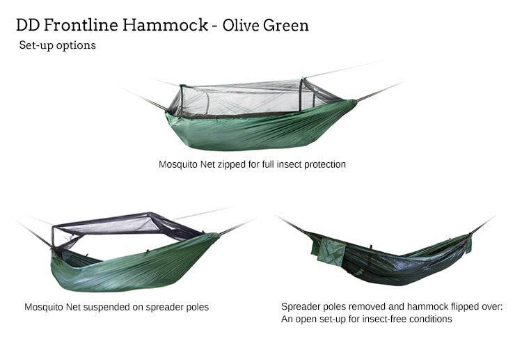 DD Hammocks DD Frontline atmungsaktive Reisehängematte mit Moskitonetz olivgrün