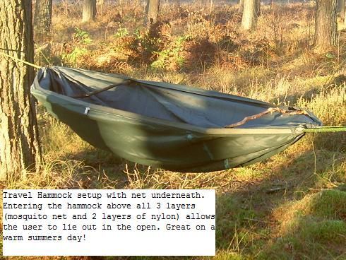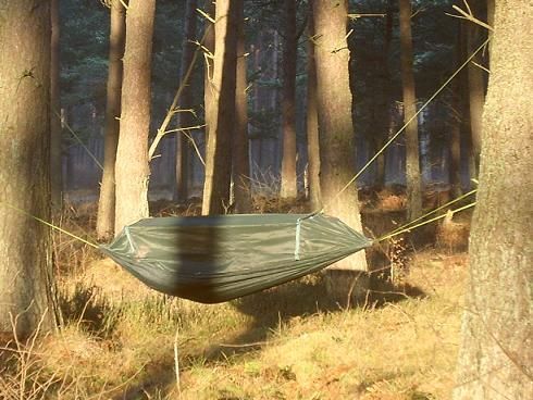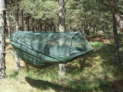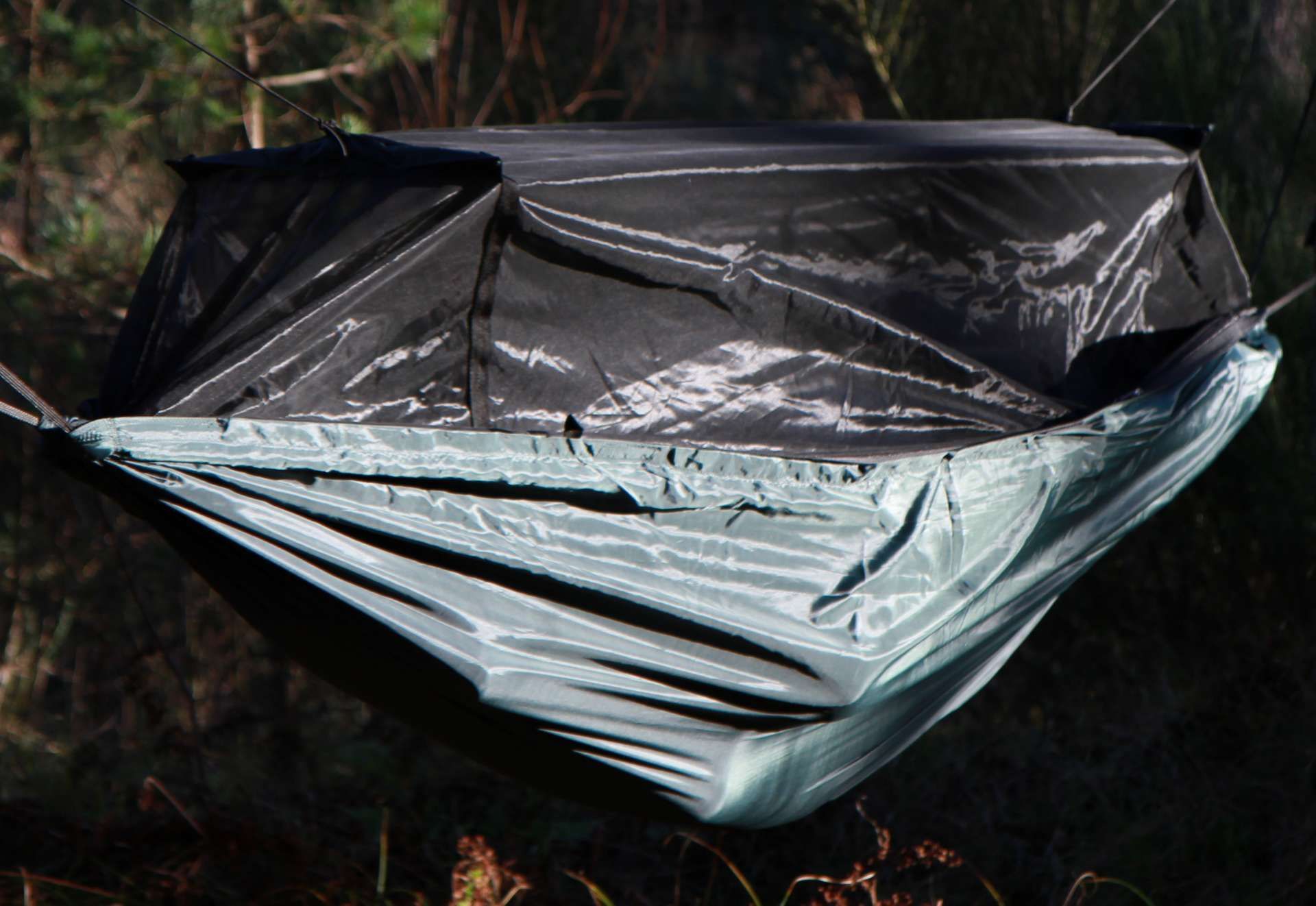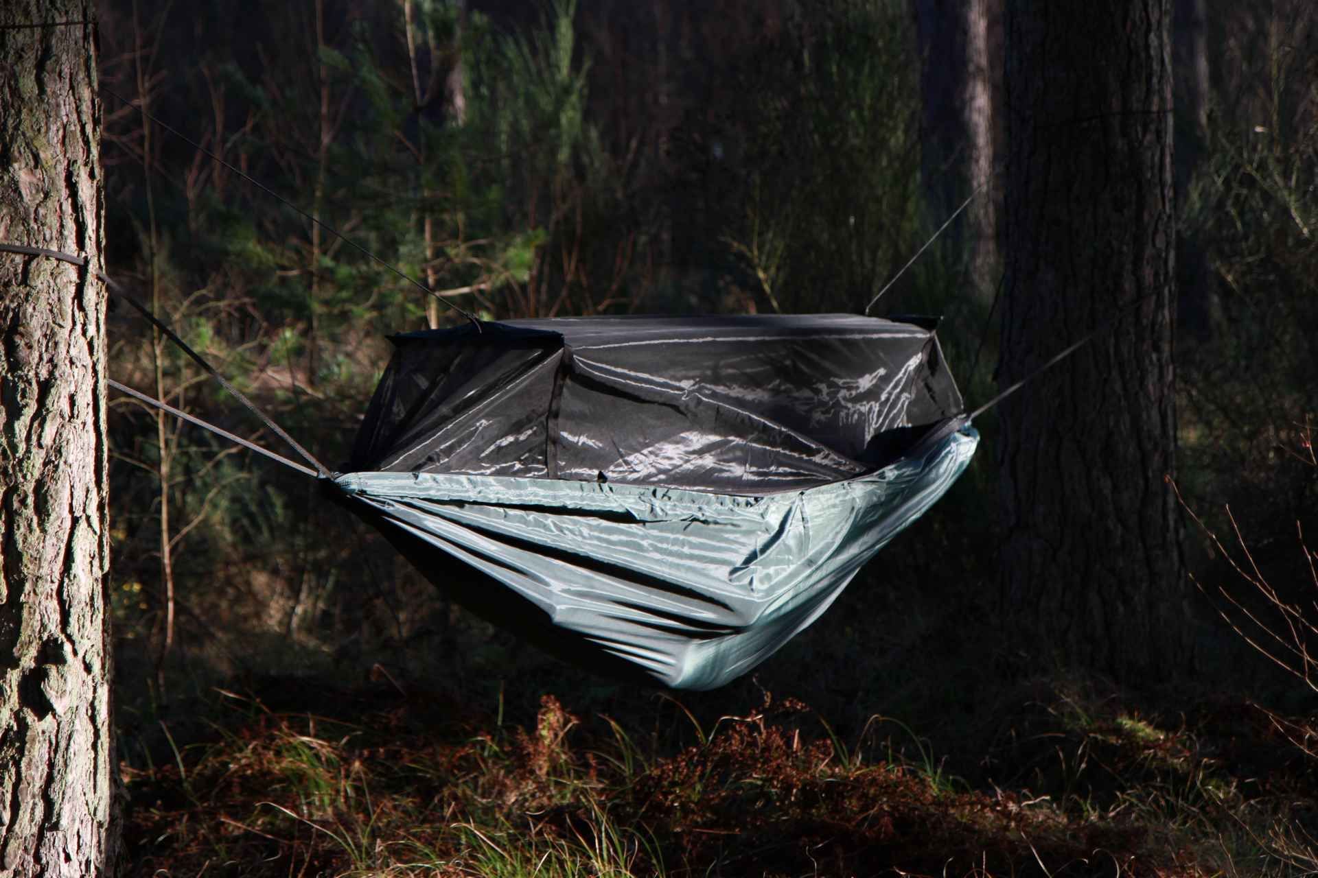 Die DD Travel Bivi ist eine grüne Reisehängematte aus wasserdichtem Nylon. Das bedeutet, dass man die Hängematte auch ohne Bodenplane auf feuchtem Untergrund wie ein Zelt am Boden aufbauen kann. Ideal für Landschaften mit wenig Bäumen und nicht allzu heißem Klima. Die Liegefläche ist zweilagig. Das