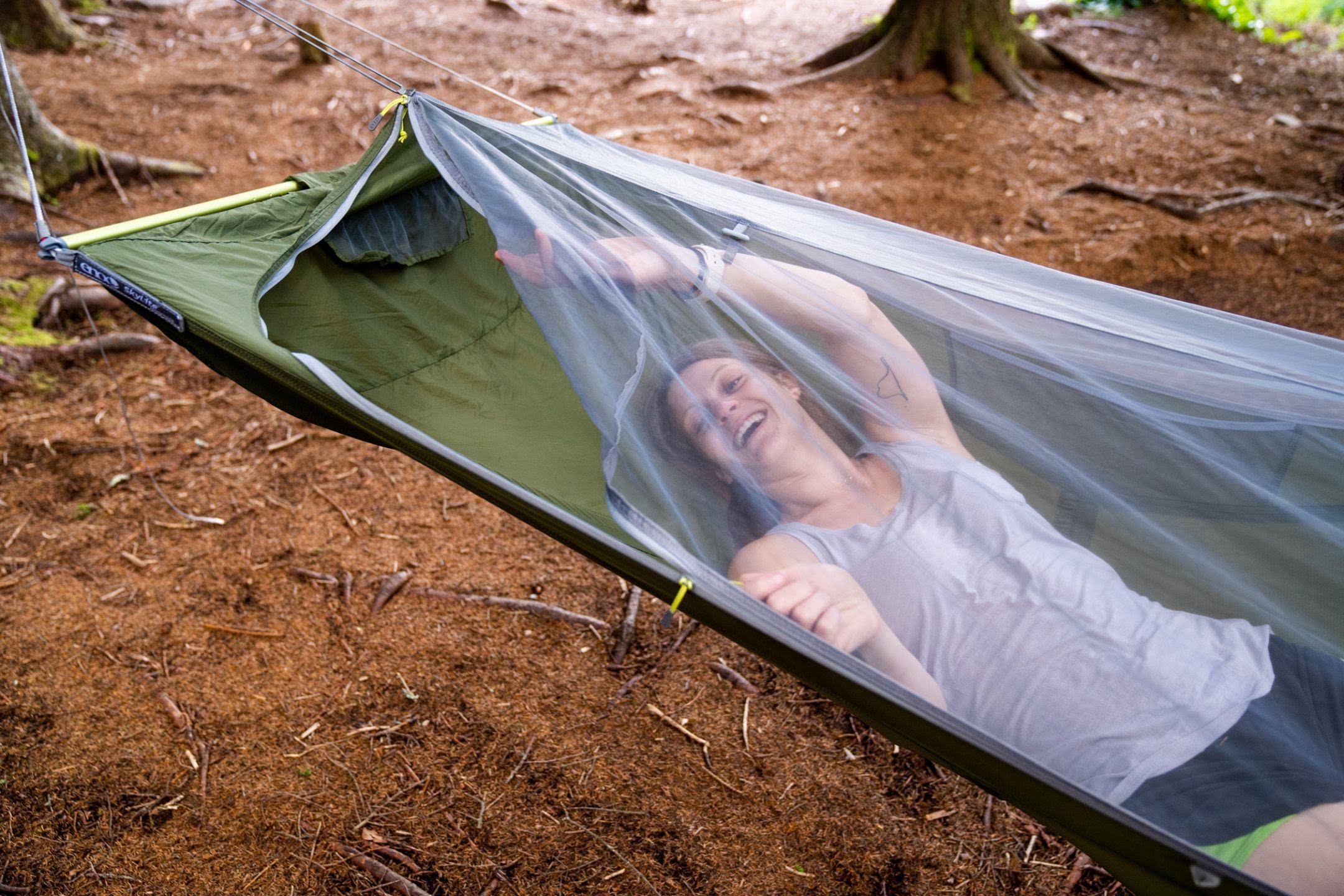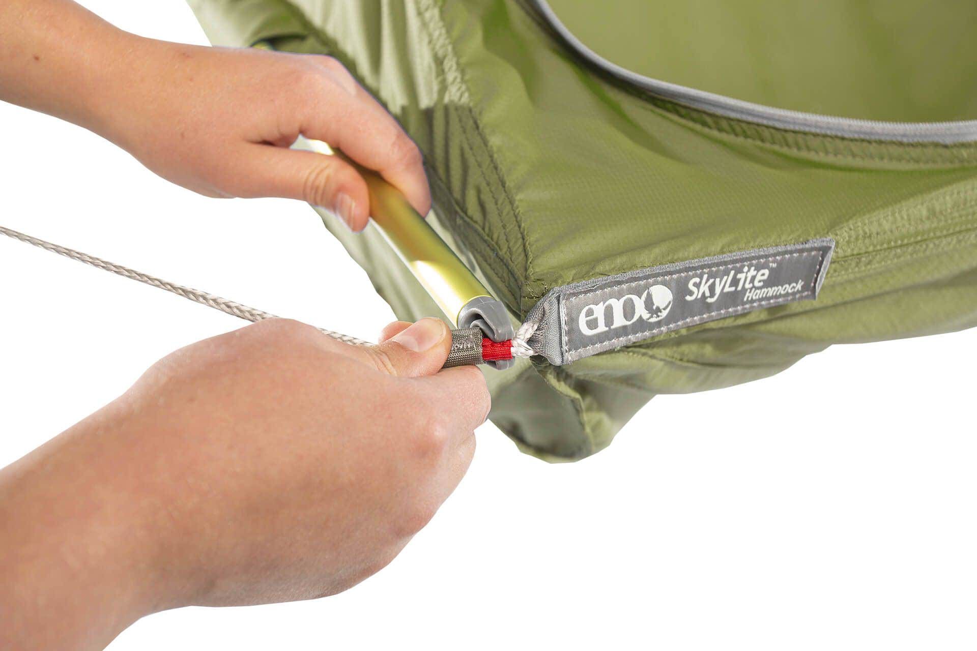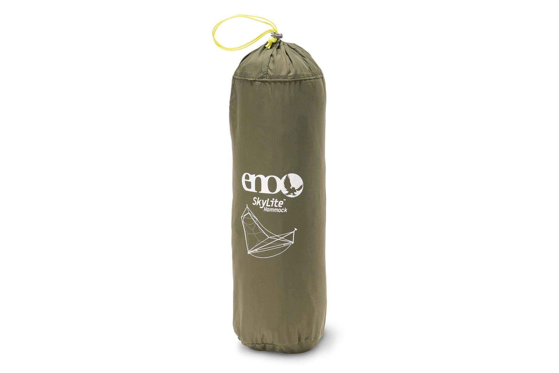Die von Zelten inspirierte ENO SkyLite Hängematte bietet unvergleichlichen Camping-Komfort mit ihrem bahnbrechenden ergonomischen Design, das sich unterstützend anfühlt und dennoch ein schwereloses Schlaferlebnis bietet, das jeden Camper erfrischt.<ul><li>Abnehmbare DAC Spreizstangen schaffe