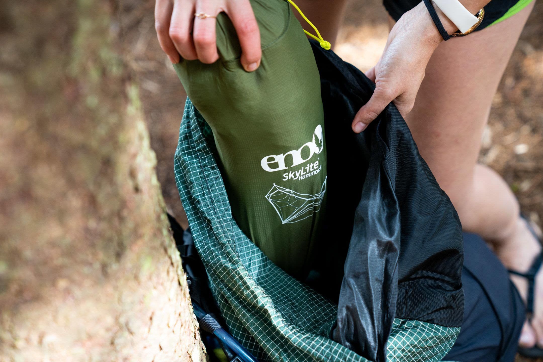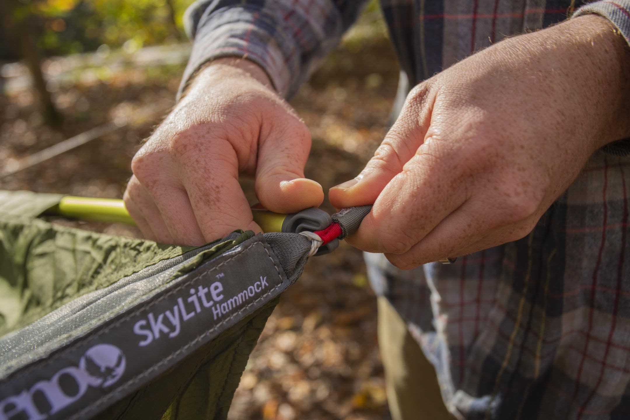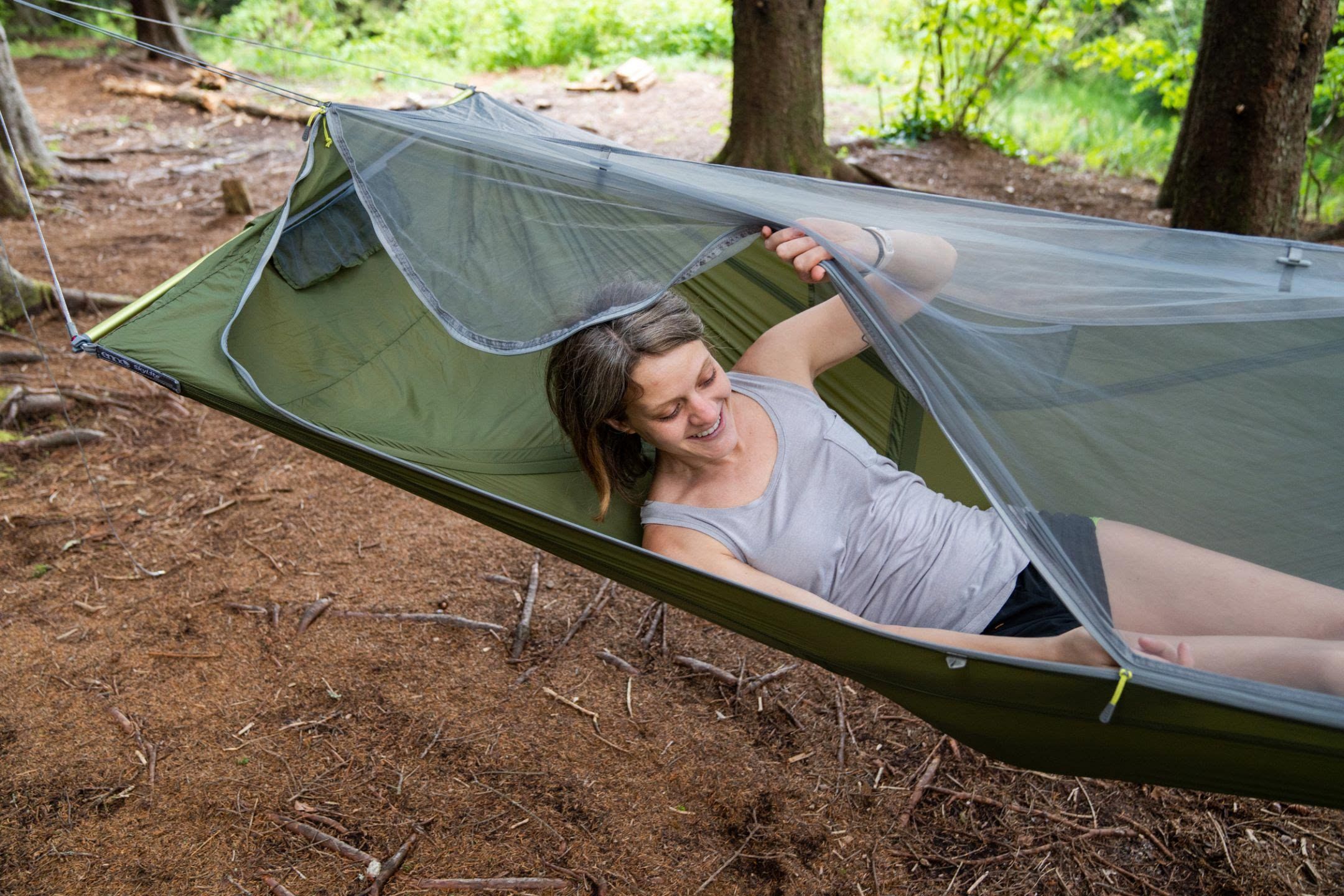 Die von Zelten inspirierte ENO SkyLite Hängematte bietet unvergleichlichen Camping-Komfort mit ihrem bahnbrechenden ergonomischen Design, das sich unterstützend anfühlt und dennoch ein schwereloses Schlaferlebnis bietet, das jeden Camper erfrischt.<ul><li>Abnehmbare DAC Spreizstangen schaffe