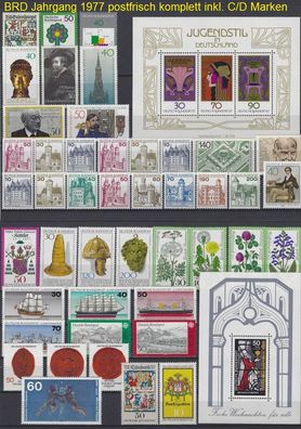 BRD / Bund Jahrgang 1977 komplett sauber postfrisch mit allen C/ D - Marken