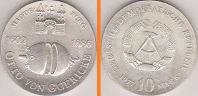1977 DDR 10 Mark Otto von Guericke Silber Stempelglanz Exportqualität