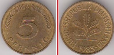 1983 5 Pfennig - Prägebuchstabe -D- für Sammler