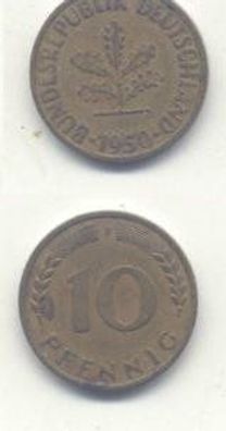 10 Pfennig BRD 1950 "F" Germany / Deutschland / D
