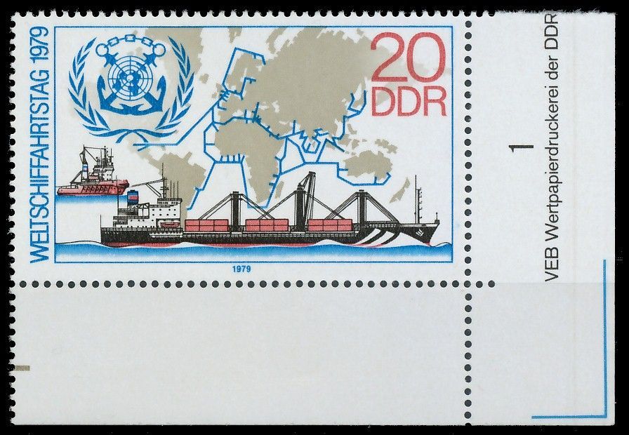 DDR 1979 Nr 2405 postfrisch ECKE-URE 20 Pfg Wert aus der Ausgabe Weltschifffahrtstag 0.55€ incl. MwSt: Differenzbesteuert zzgl. Versandkosten Bestell-Nr.: AAF20A Katalog-Nr: MICHEL (2405) Katalogpreis: 0,80 EUR Qualität: Normal Erhaltung: Postfrisch ** Einheit: Einzelmarke Einzelstück Bogenlage