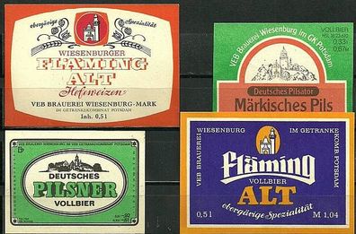 ALT ! DDR Bieretiketten Brauerei † 1994 Wiesenburg/ Mark Lkr. Potsdam-Mittelmark