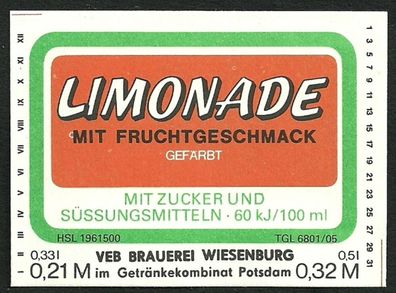 ALT ! DDR Getränke-Etikett VEB Brauerei † 1994 Wiesenburg/ Mark GK Potsdam