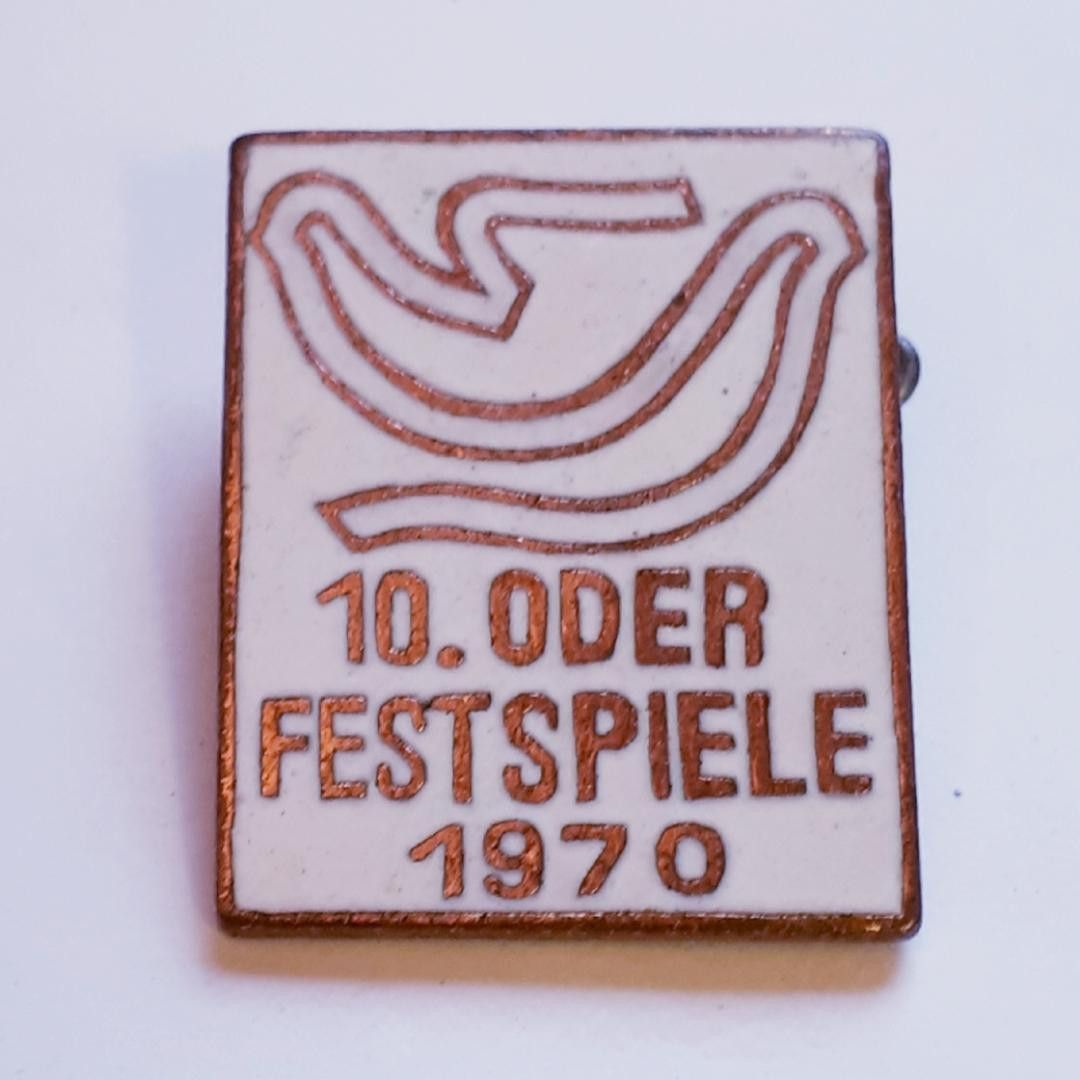 DDR Abzeichen 10.Oderfestspiele 1970 K. * Maße: ca. 2,5 cm x 2 cm * beide Abzeichen sind emailliert Zustand: gut - gebraucht mit kleinen Gebrauchsspuren
