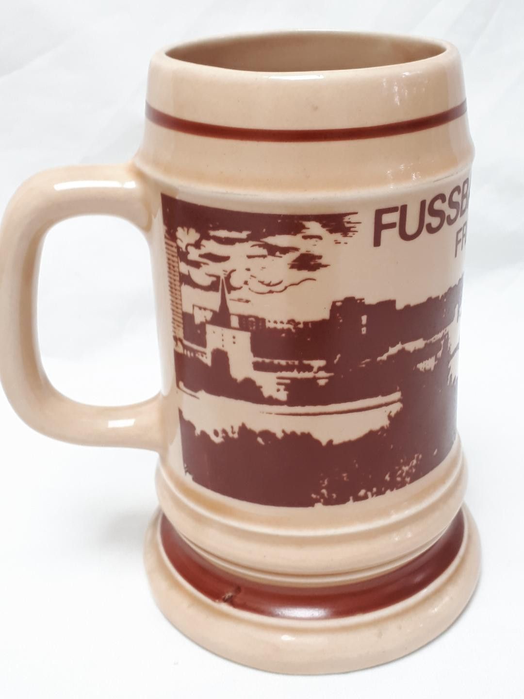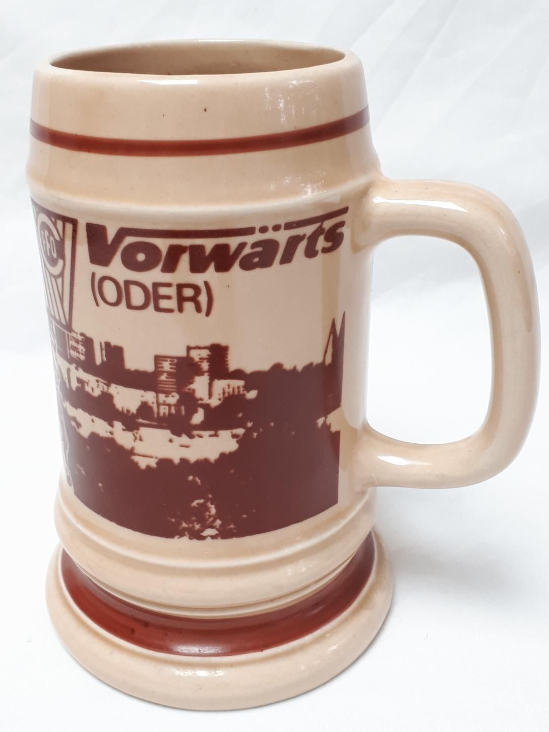 DDR Bierkrug Fußballclub Vorwärts Frankfurt Oder T. * VEB Steingutwerk Torgau * Höhe: ca. 16,5 cm * Durchmesser (innen oben): ca. 7 cm * Durchmesser (Boden): ca. 11 cm * Gewicht: ca. 794 g Zustand: gut - gebraucht mit kleinen Gebrauchsspuren (leichte Verschmutzungen kommen vor) Abbildung ist beispielhaft, Abweichungen kommen vor!