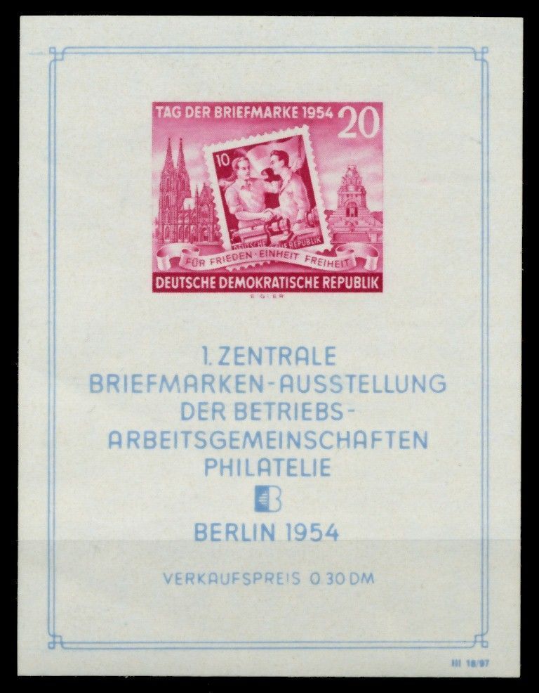 DDR BLOCK KLEINBOGEN Block 10XII II postfrisch Blockausgabe 20 Pfg Wert Tag der Briefmarke 1954, Rahmen gebrochen oben rechts. rückseitig Stockfleck auf der Marke, sonst einwandfrei 86.41€ incl. MwSt: Differenzbesteuert zzgl. Versandkosten Bestell-Nr.: 6E2B22 Katalog-Nr: MICHEL (Block 10XII II)