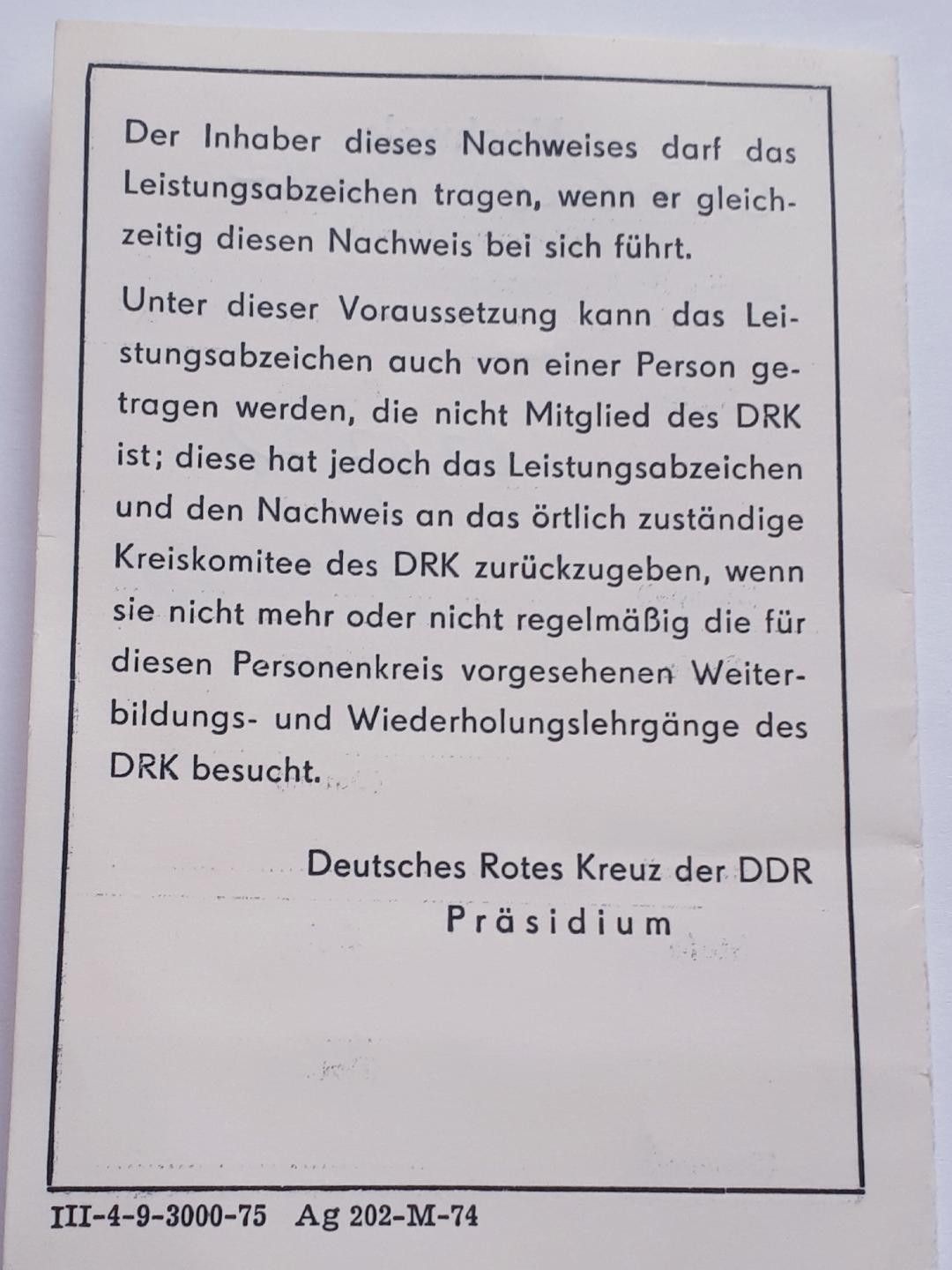 DDR DRK Nachweis für Leistungsabzeichen in Bronze 1978
