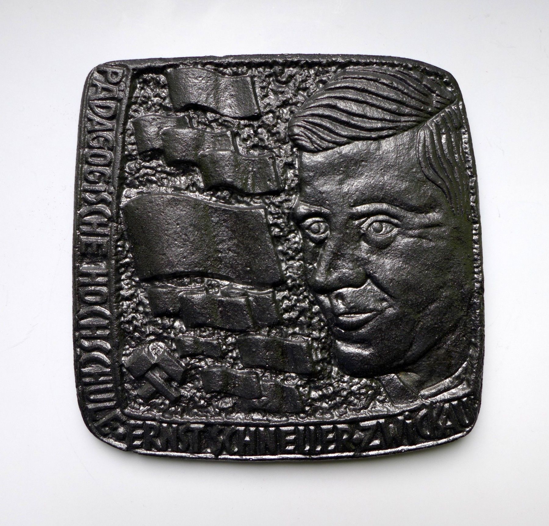DDR Eisenguss Plakette Pädagogische Hochschule Ernst Schneller Zwickau